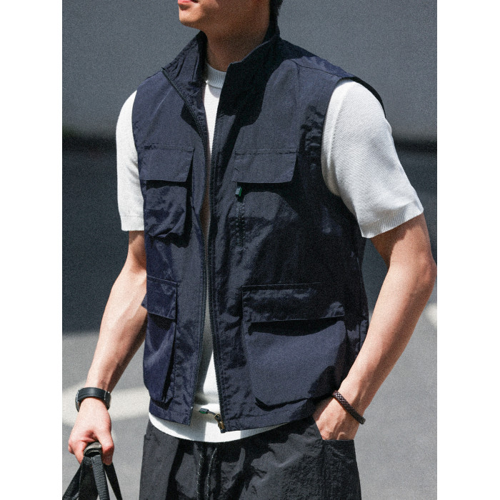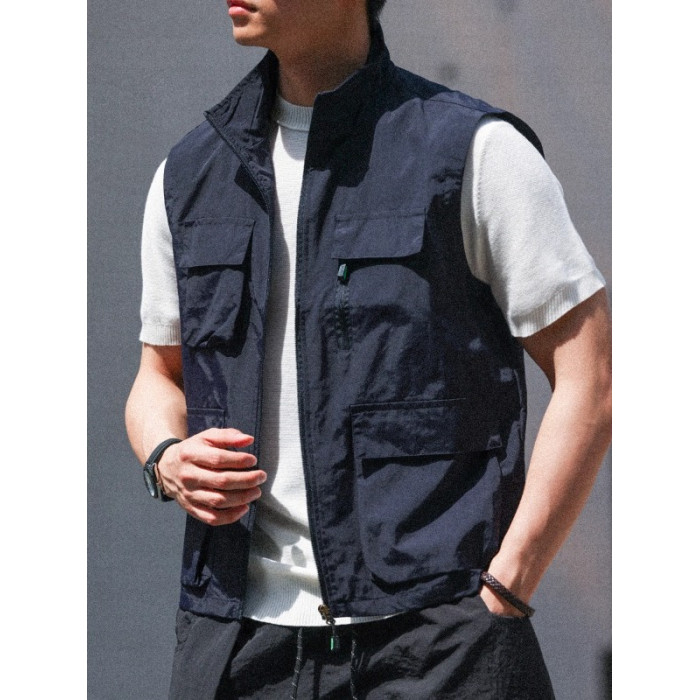 美式多口袋無袖馬甲男士外套夏季新款防水透氣輕薄款戶外工裝坎肩