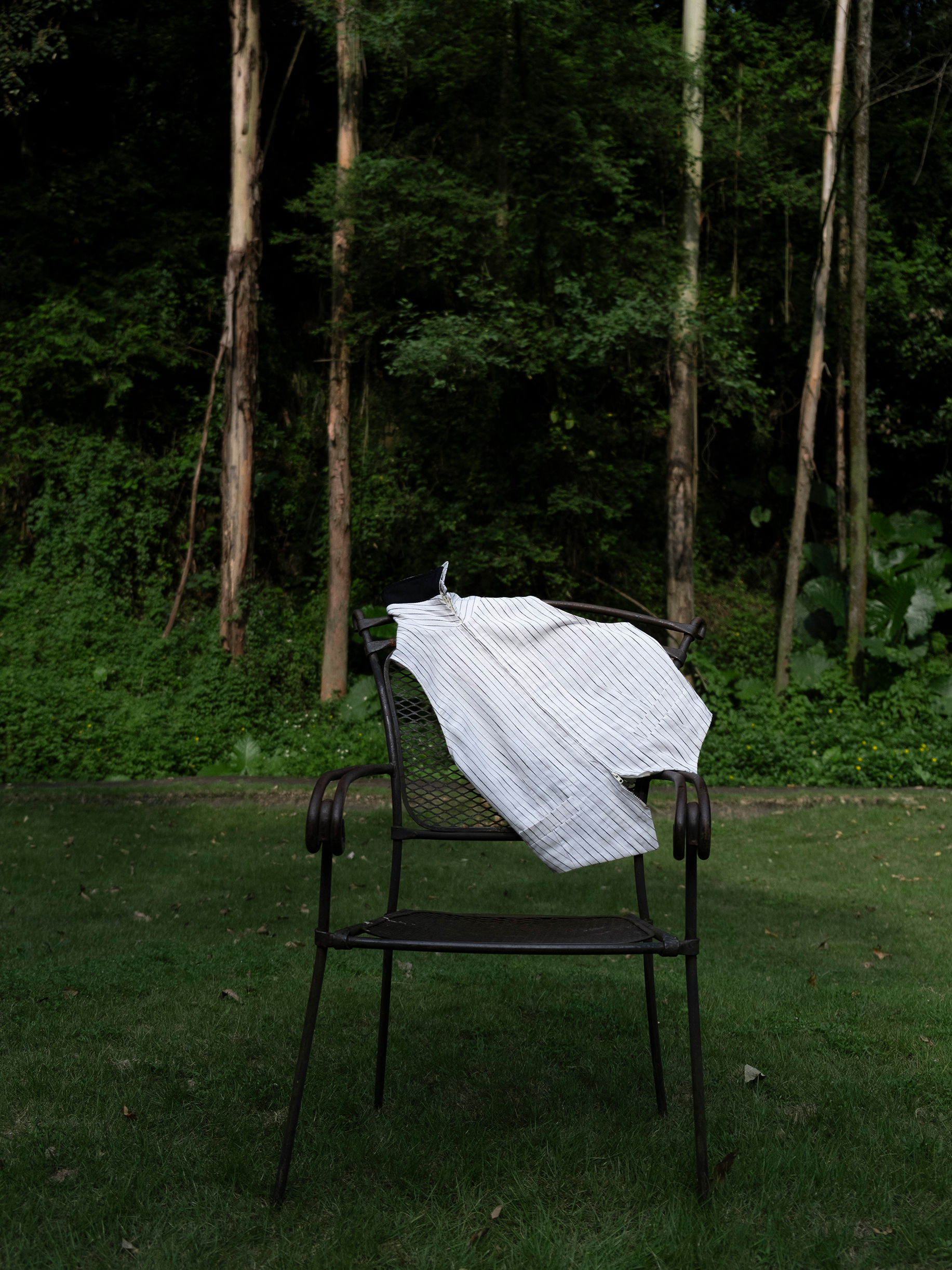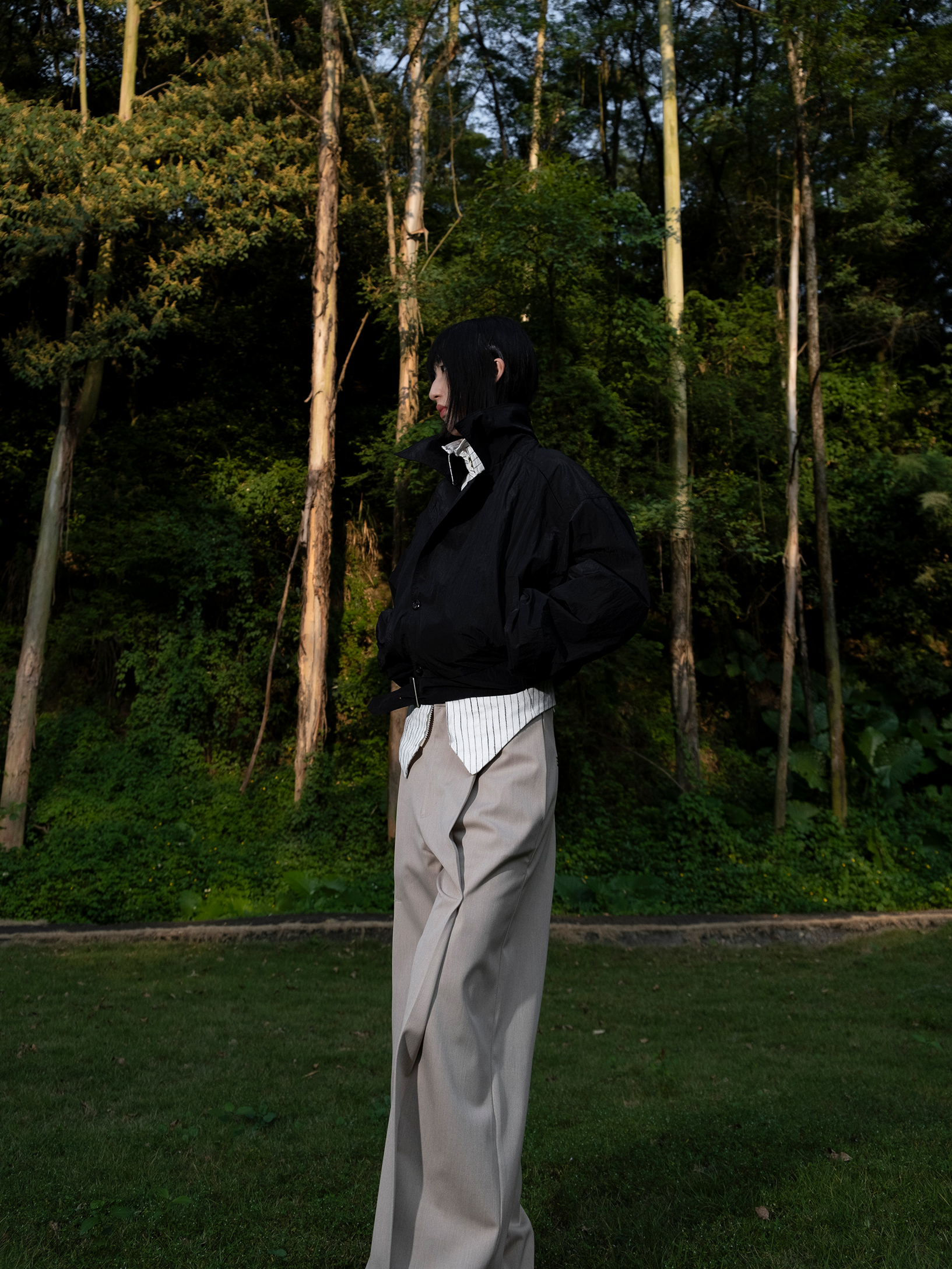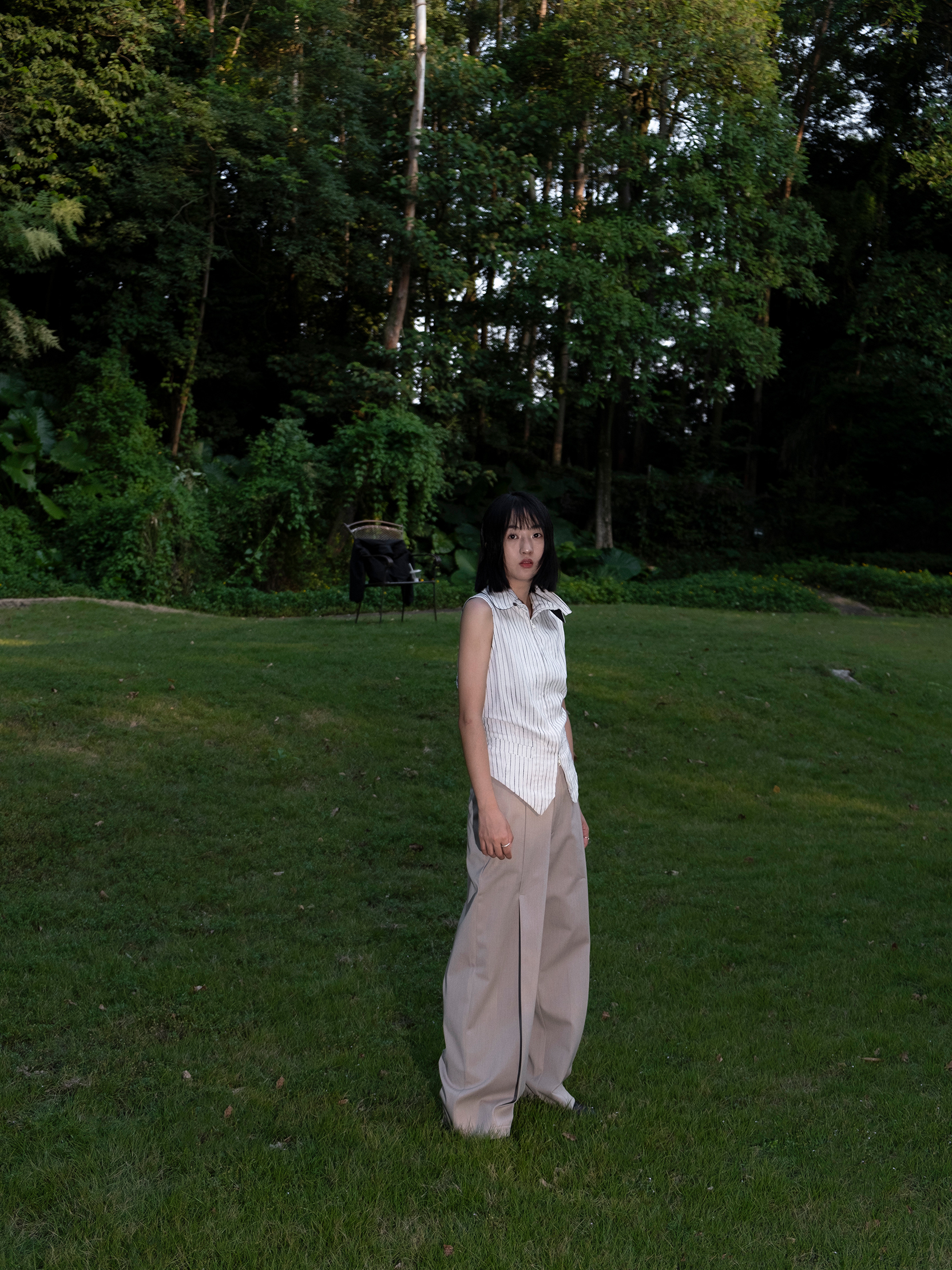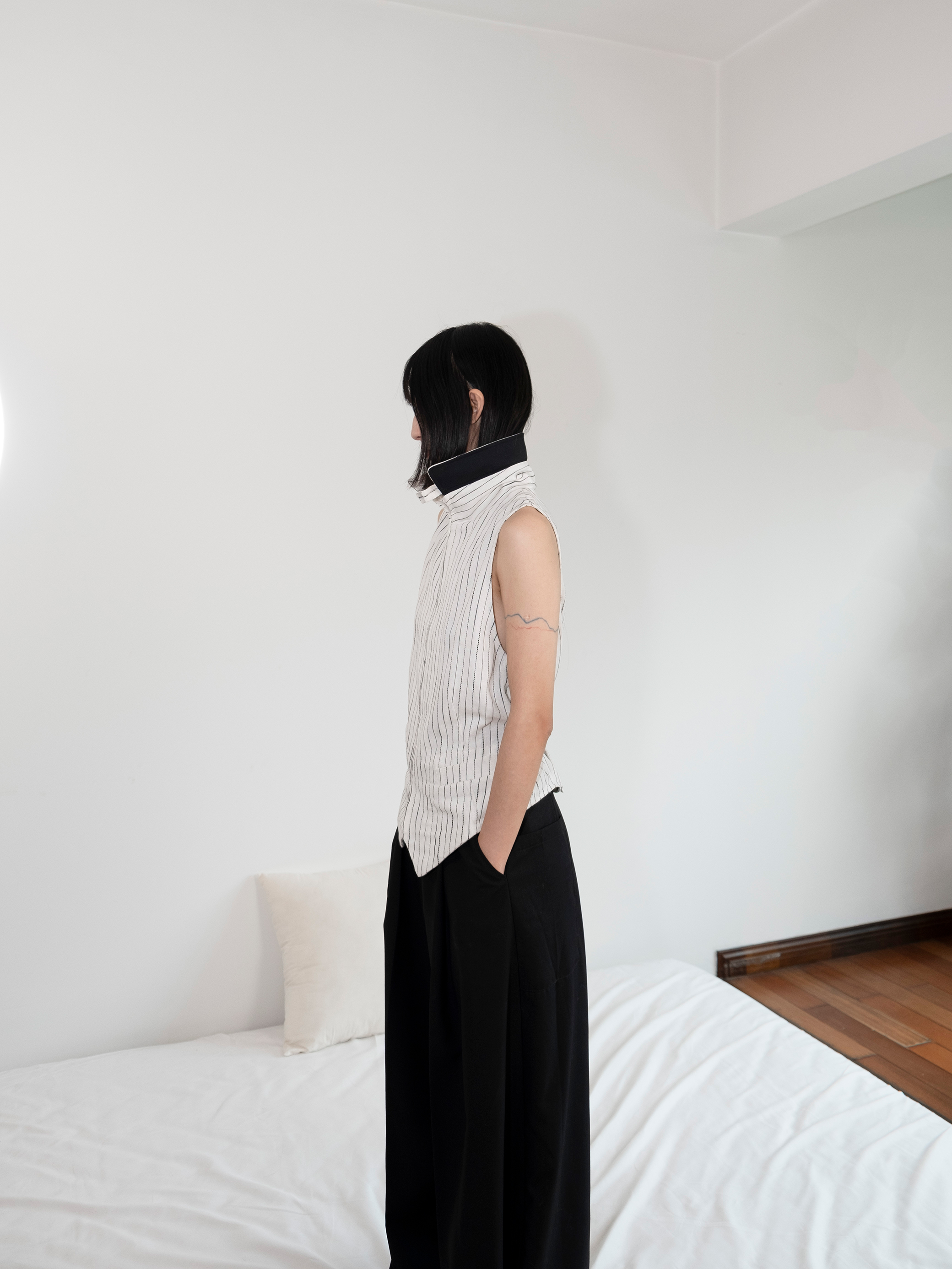 DeadOnArrival "悉達多" 雙開拉鍊馬甲 中性亞麻條紋拼接翻領馬甲