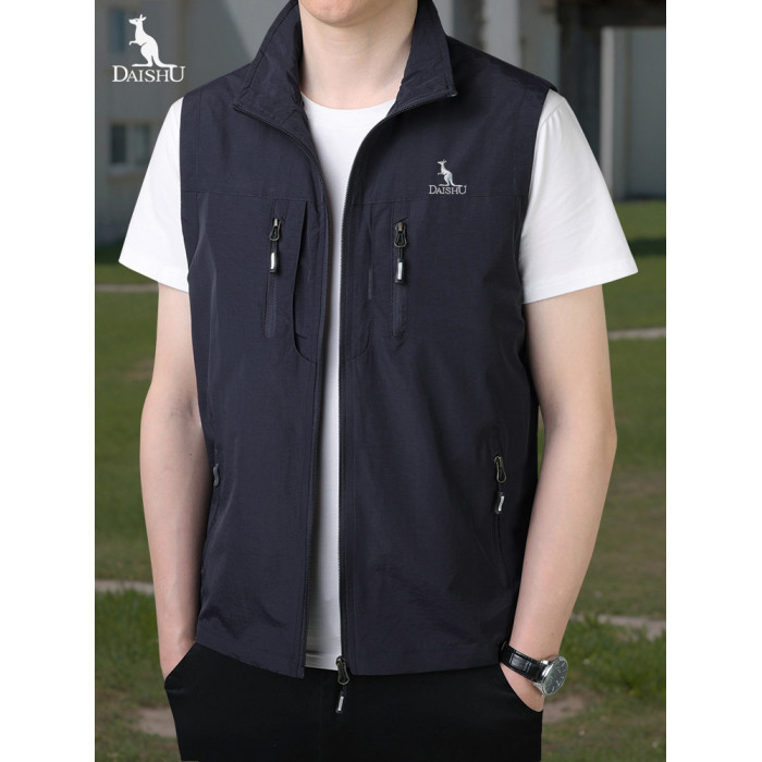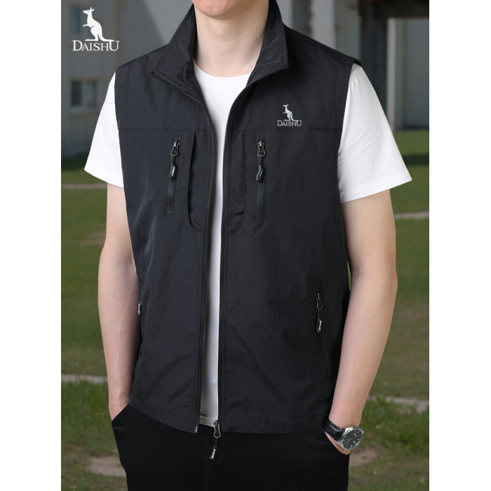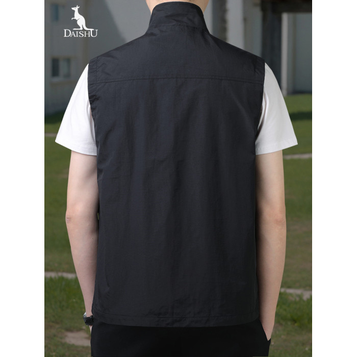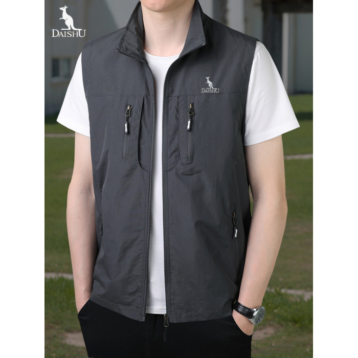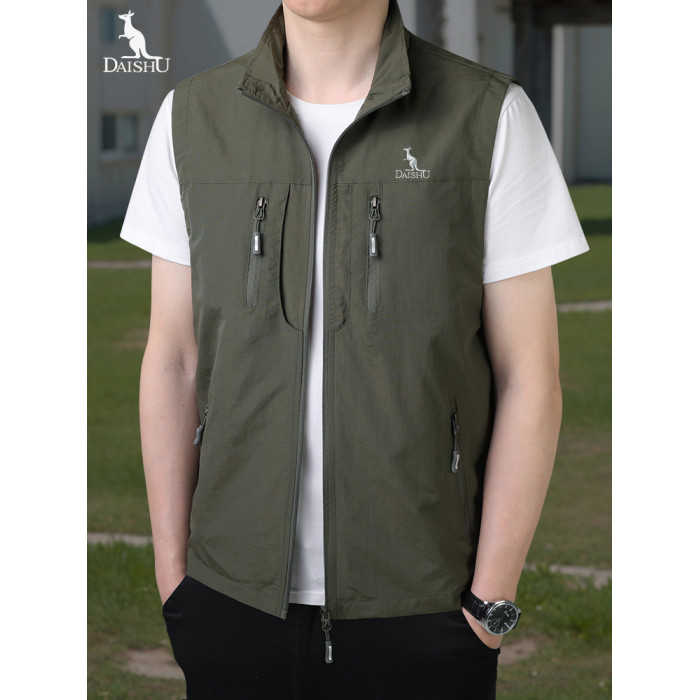 袋鼠品牌釣魚馬甲男中年時尚夏季休閒寬松大碼工裝坎肩外套立領薄