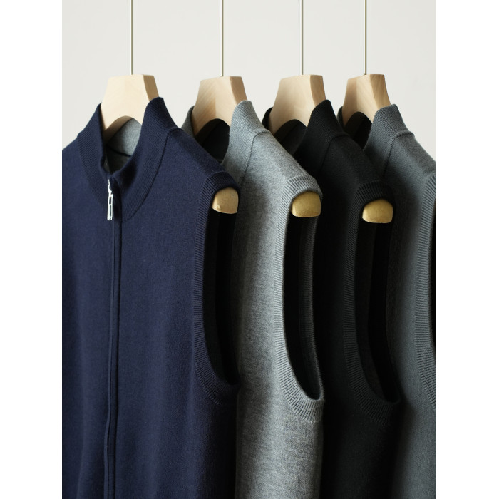 可機洗男士羊毛馬甲 28支雙股 針織立領開衫坎肩外套 秋冬款男裝