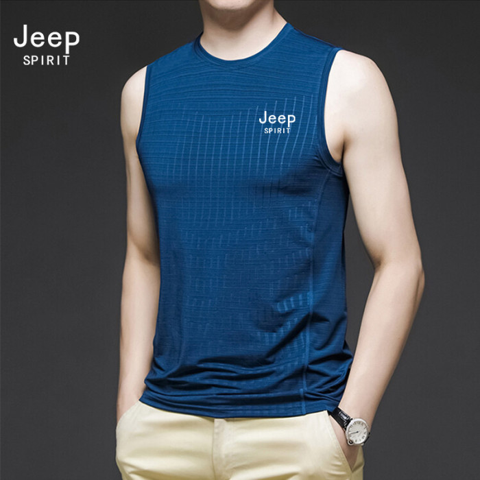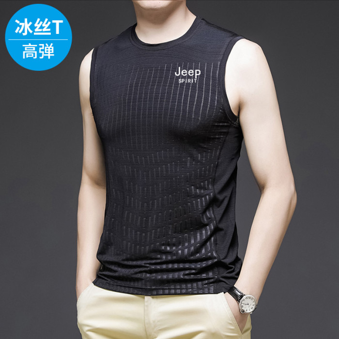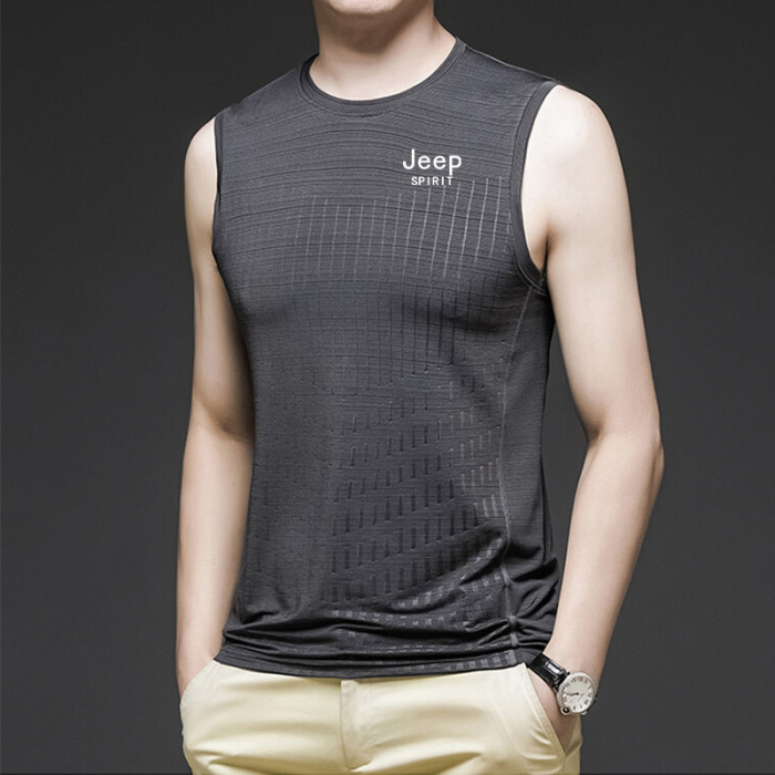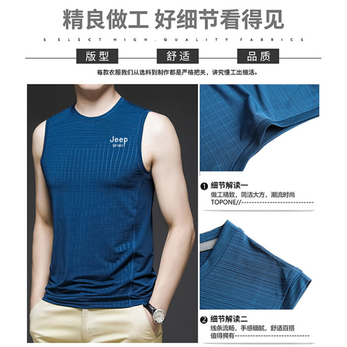 JEEP吉普無袖跑步短袖體恤男冰絲青年戶外健身速乾背心男運動坎肩