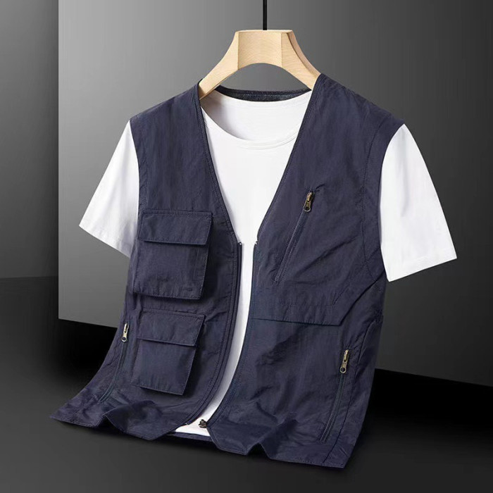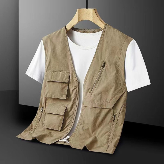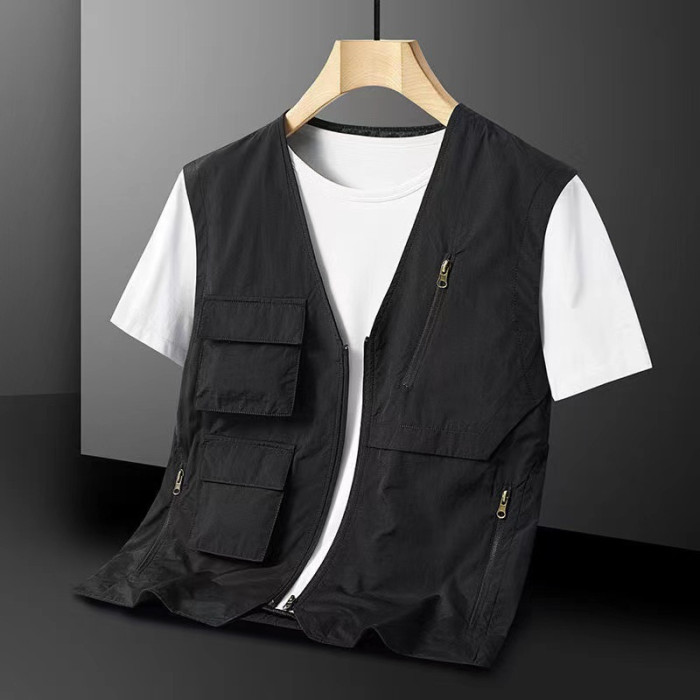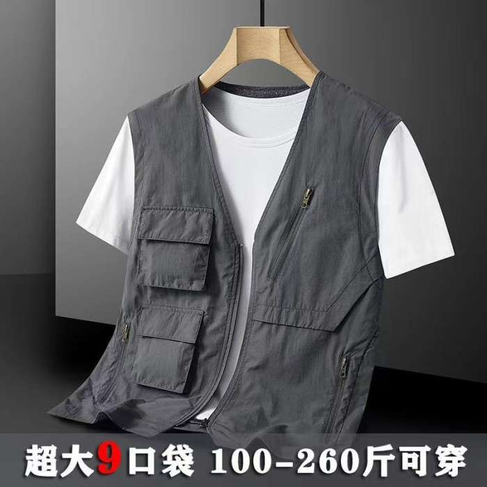 馬甲男夏季薄款男式多口袋機能工裝速乾V領坎肩大碼春秋男士外套