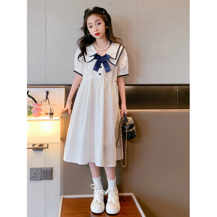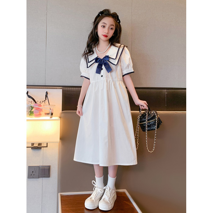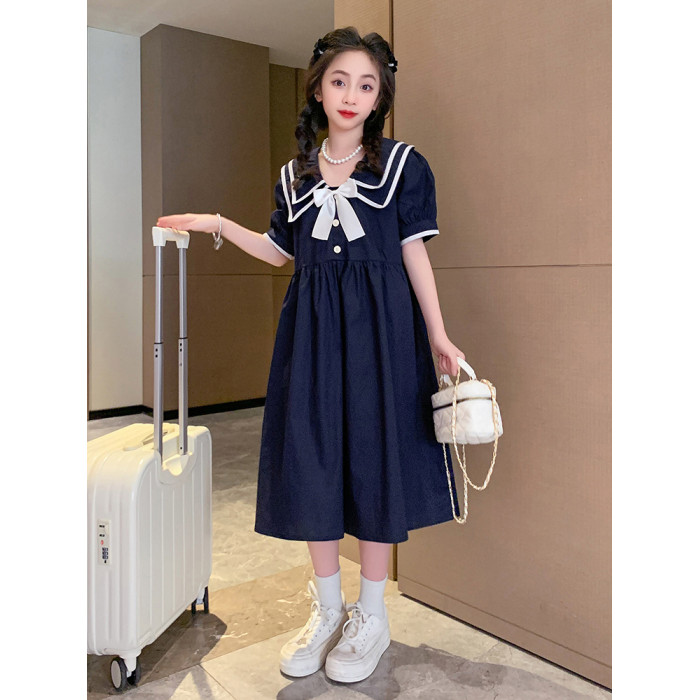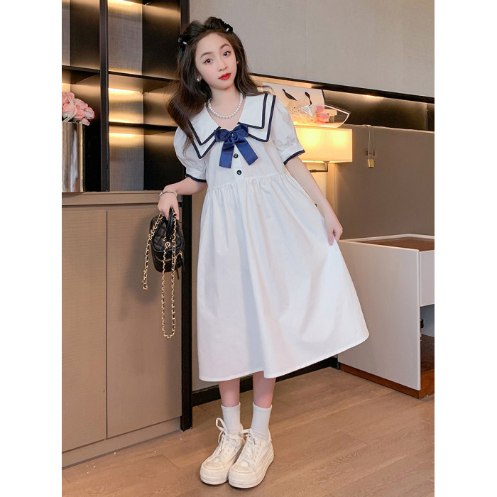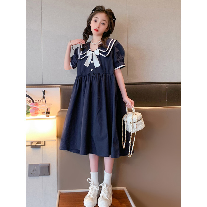女童學院風連衣裙2025夏季新款中大童洋氣夏裝兒童女孩休閒長裙子
