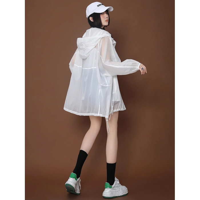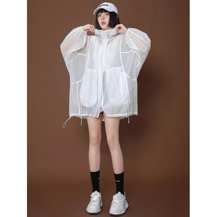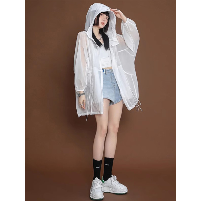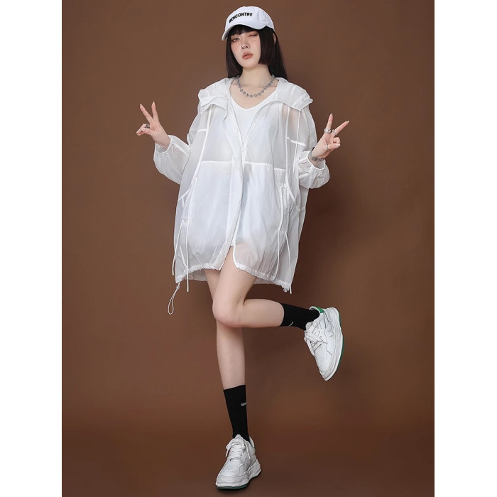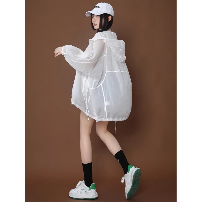 大碼夏季防曬服女裝白色防曬衣寬松2025款連帽戶外透氣冰絲防曬衫