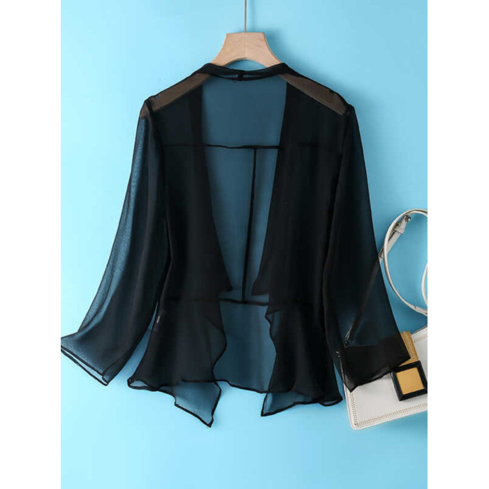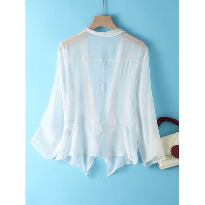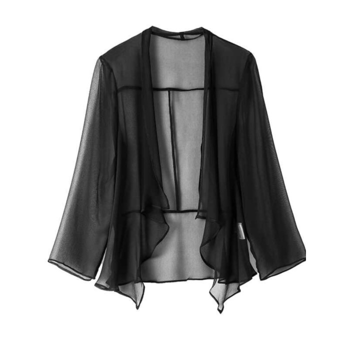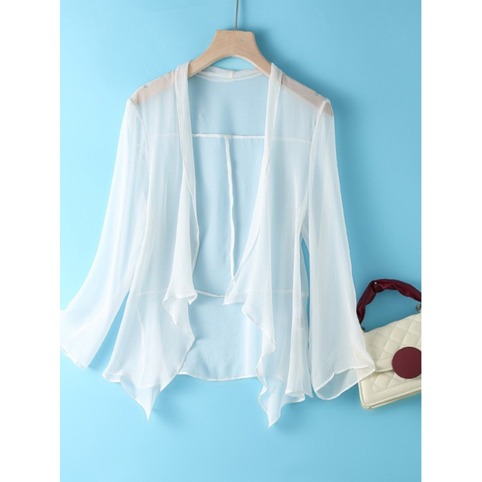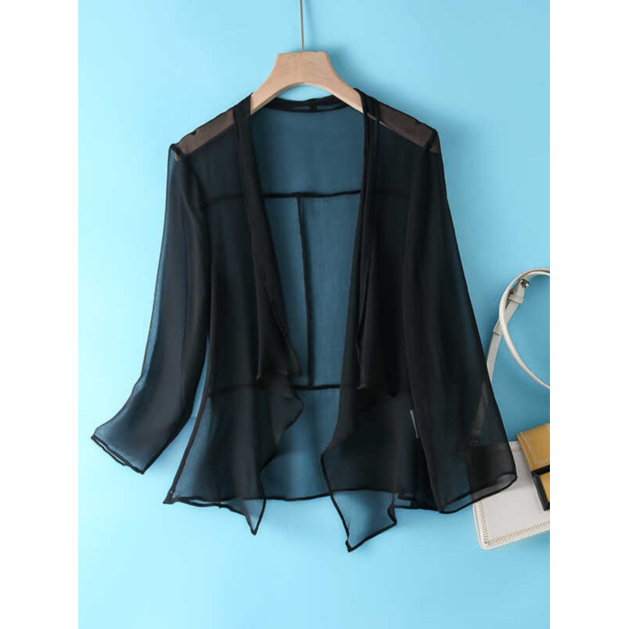 時尚洋氣真絲外搭開衫夏季薄款女配裙子罩衫桑蠶絲遮陽防曬衣外披