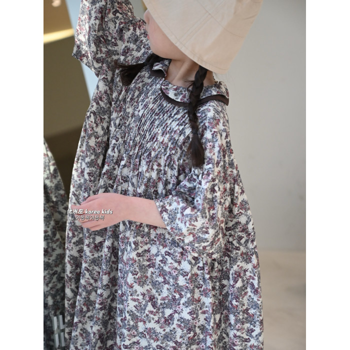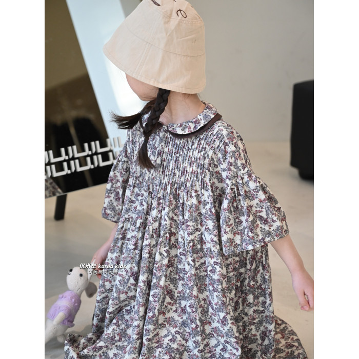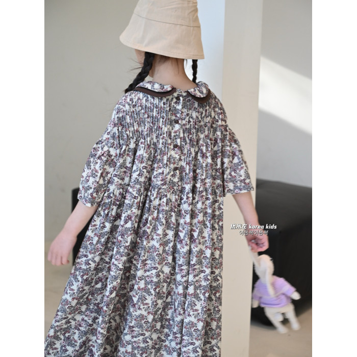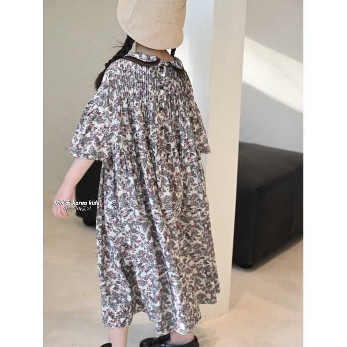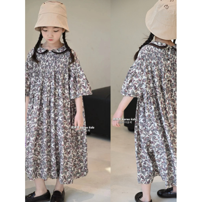 2025春夏新款女童裙子復古燈籠袖娃娃衫連衣裙甜美女孩公主裙長裙