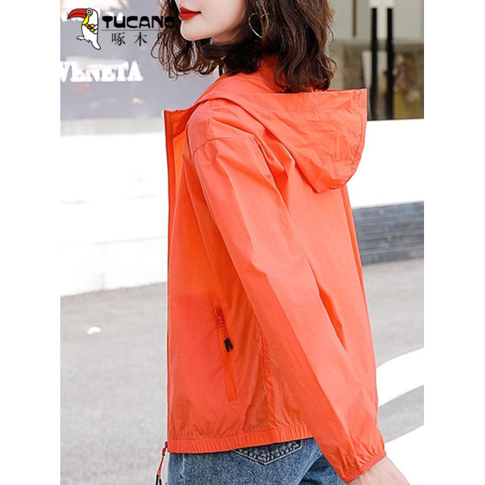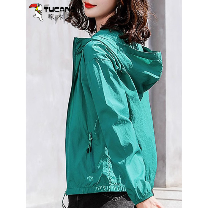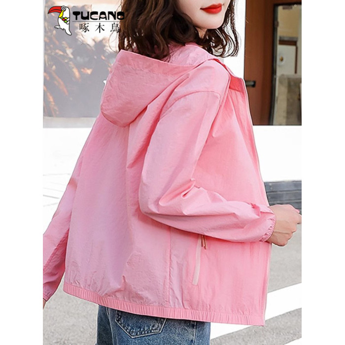 啄木鳥連帽防曬衣女款夏季2025新款戶外騎行輕薄透氣防曬服薄外套