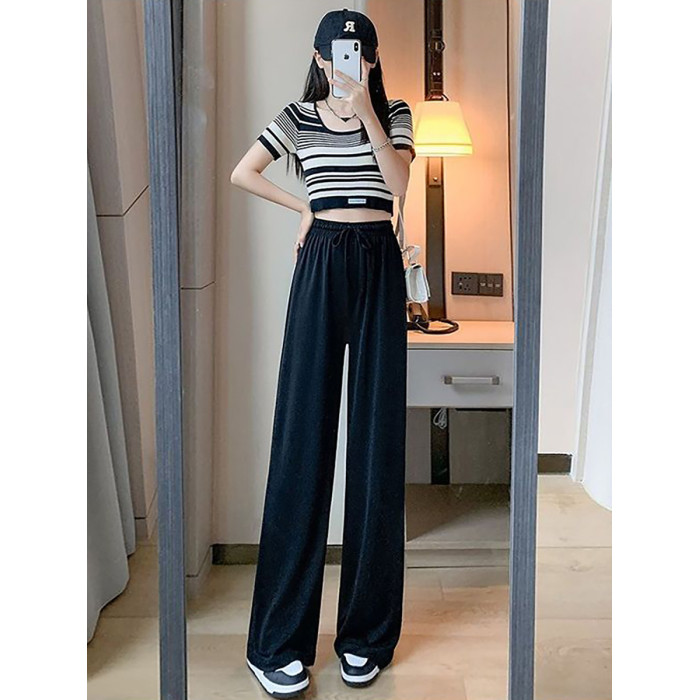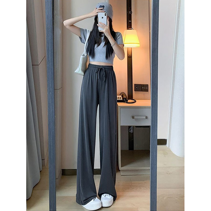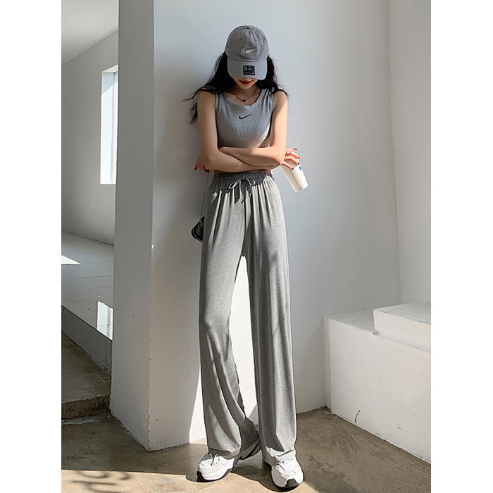 莫代爾面膜濶腿褲女褲子夏季垂感高腰寬松顯瘦落地高個子拖地長褲