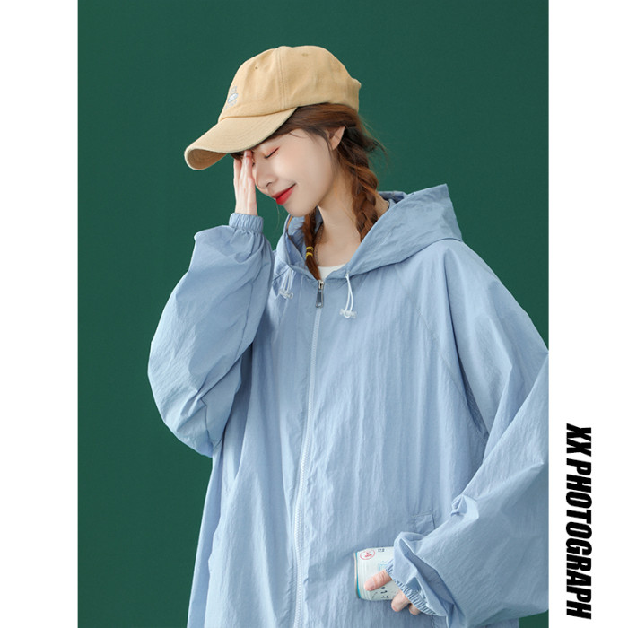拉夏貝爾夏季冰絲防曬衣女寬松連帽長袖情侶外套大碼戶外皮膚衣女