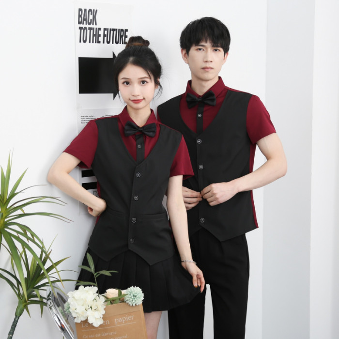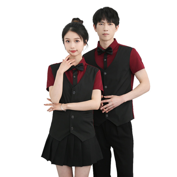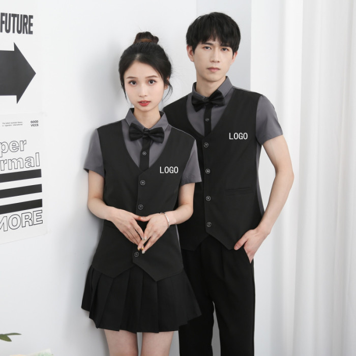 KTV服務員工作服短袖襯衫男服裝假兩件馬甲酒吧咖啡廳服務生工裝