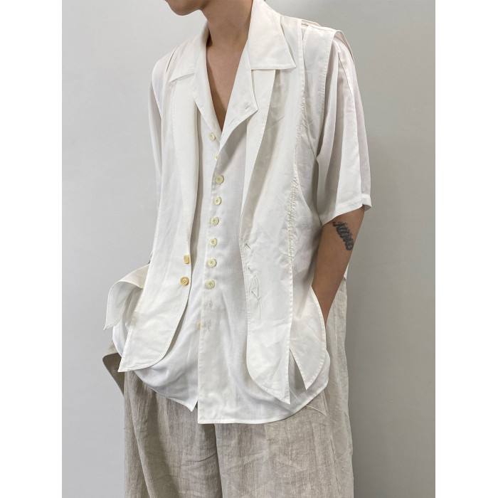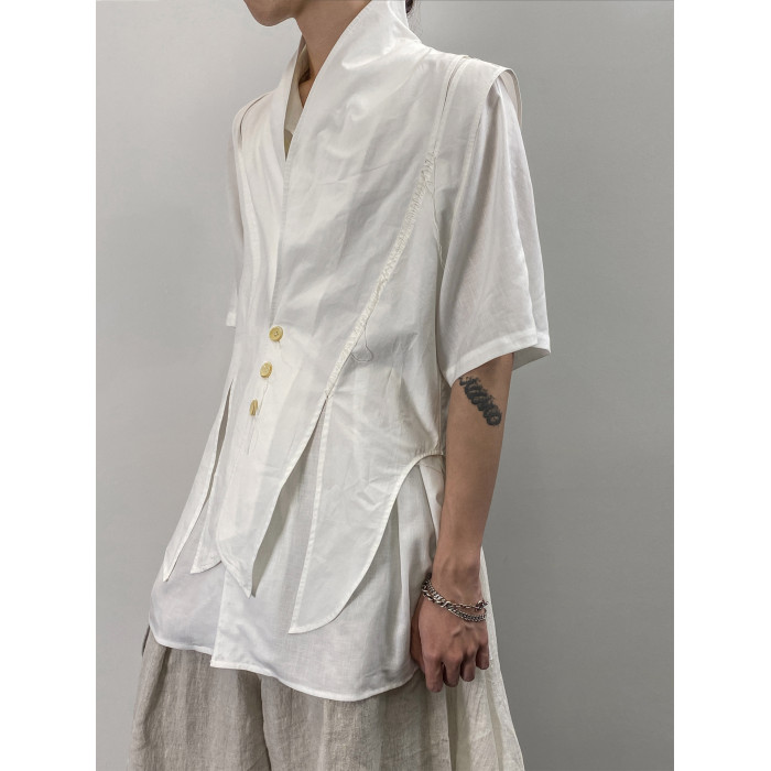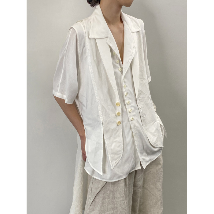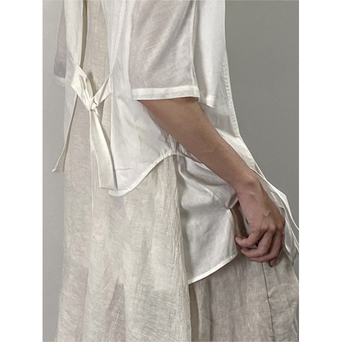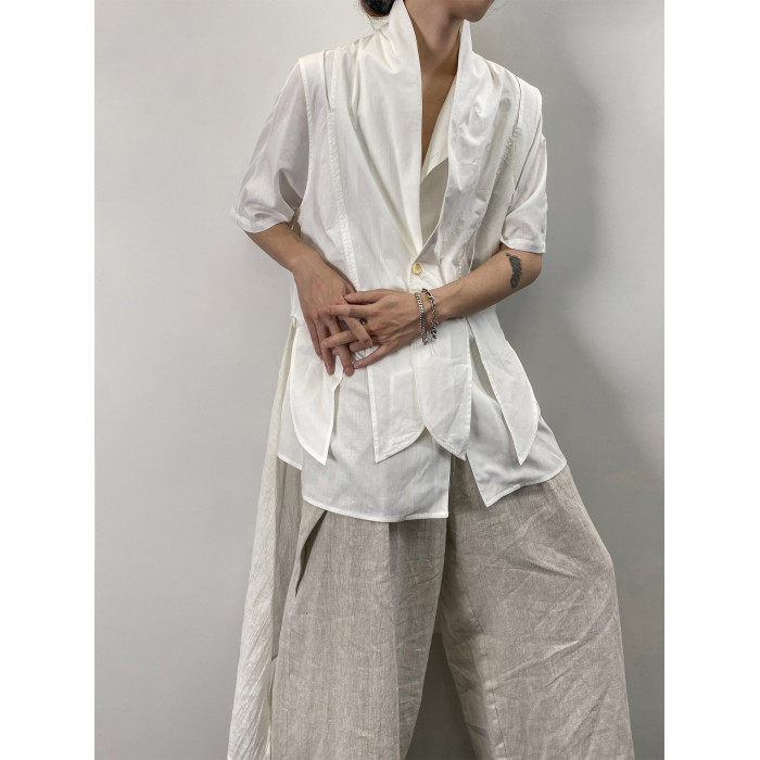 「 淩鴉ILNya 」月海_白 海月白綢馬甲 綁帶收腰無袖上衣外套