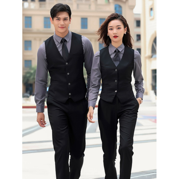 職業裝男女同款正裝長袖襯衣工裝銀行酒店前台經理工作服馬甲套裝