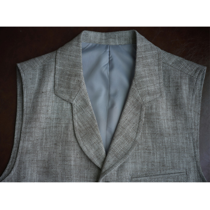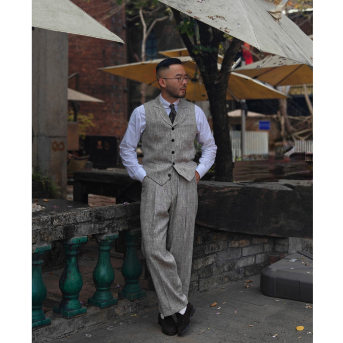 Plan B 春秋意式棉麻休閒馬甲vintage復古人字紋西裝馬甲外套男