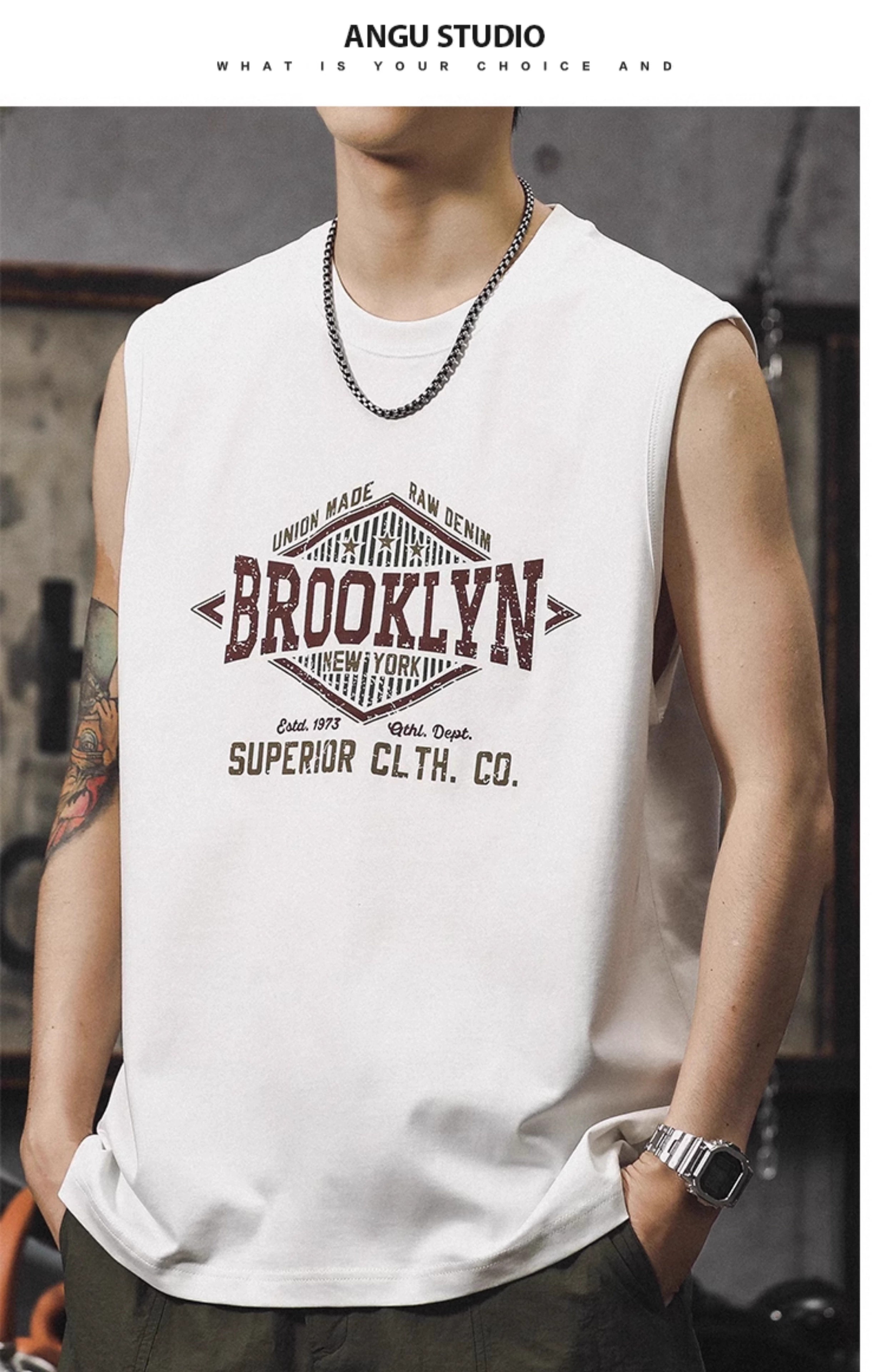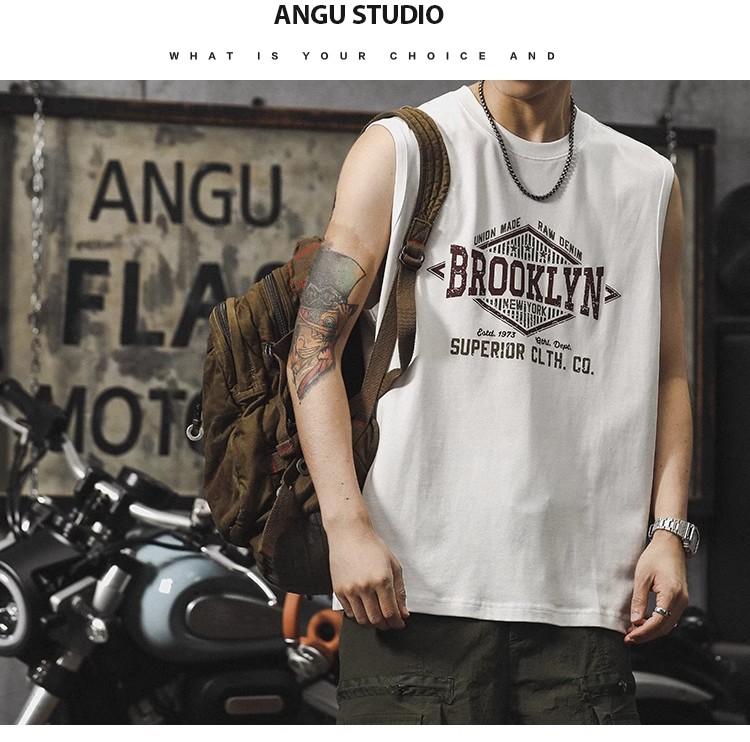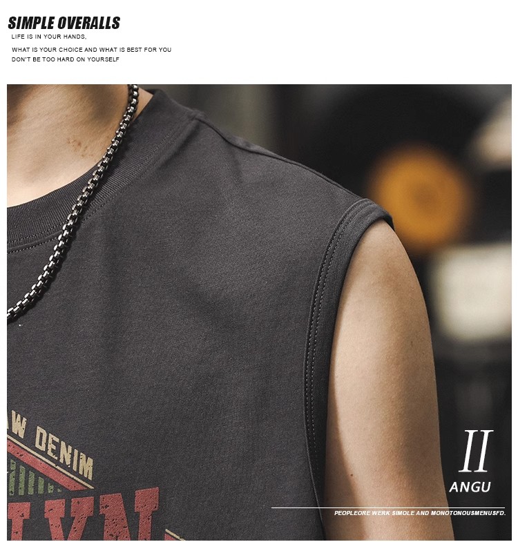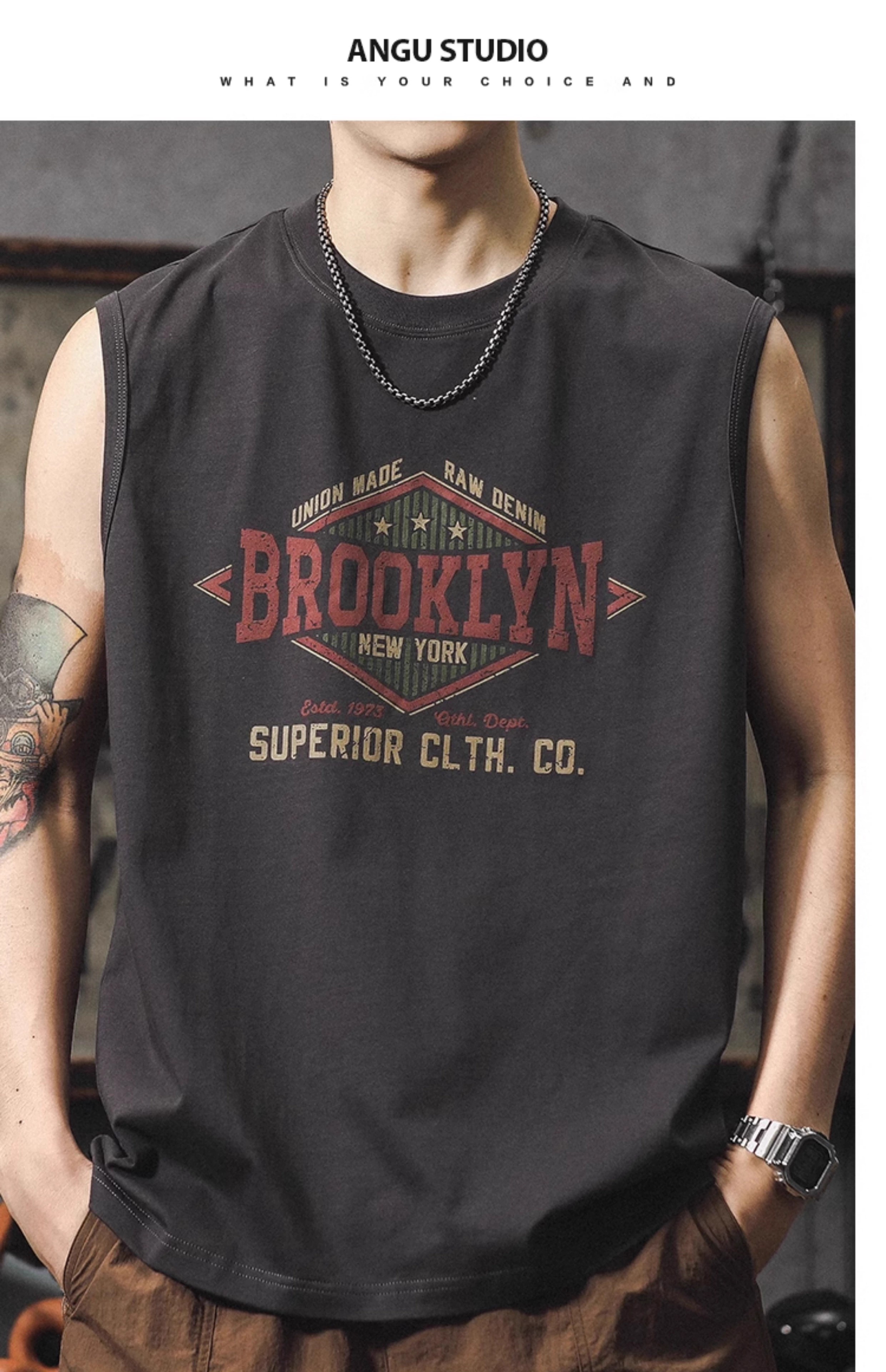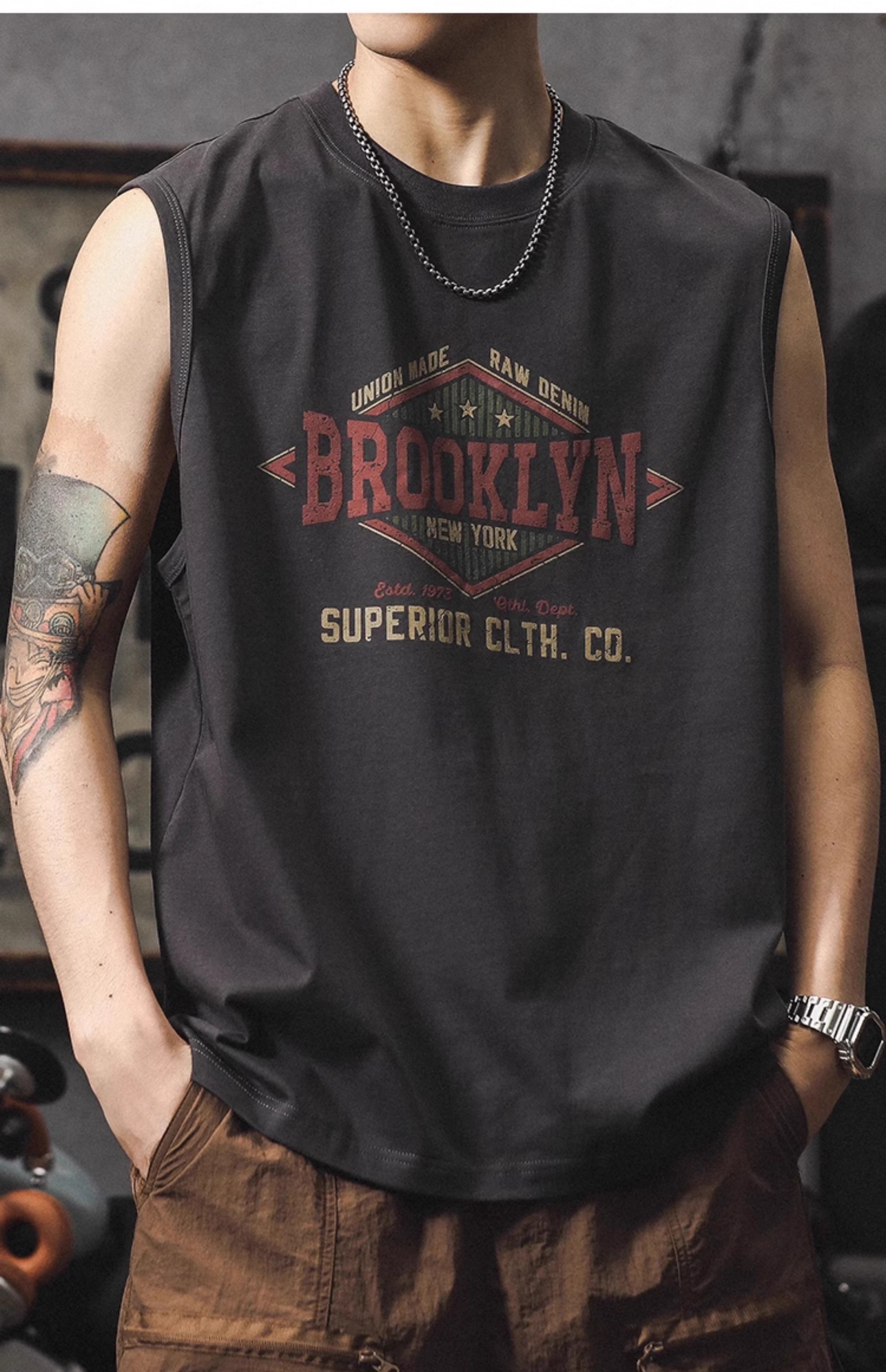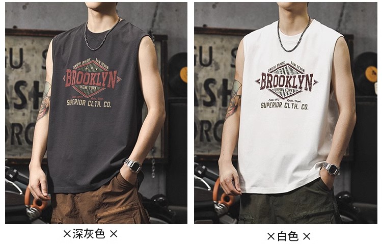美式復古潮牌重磅280g純棉無袖背心男夏季寬松跨欄運動坎肩T恤潮