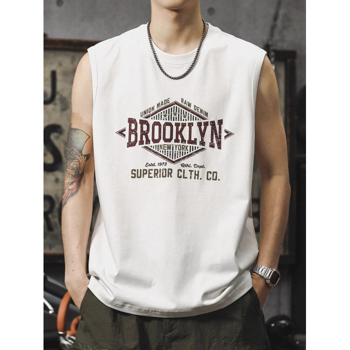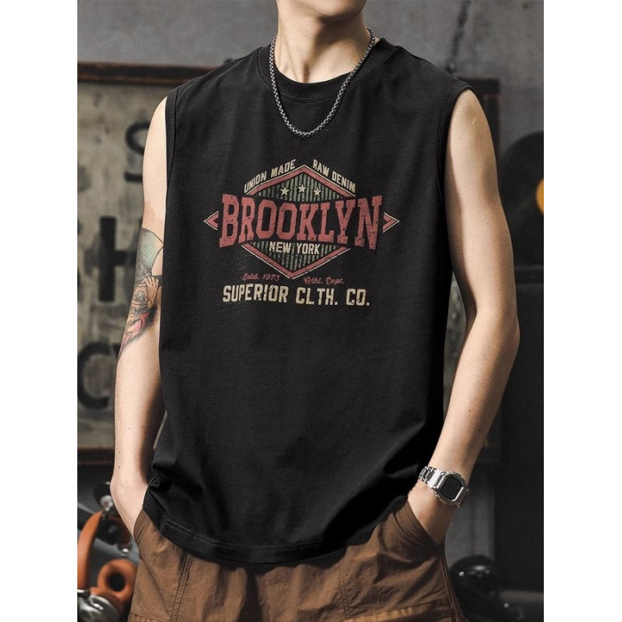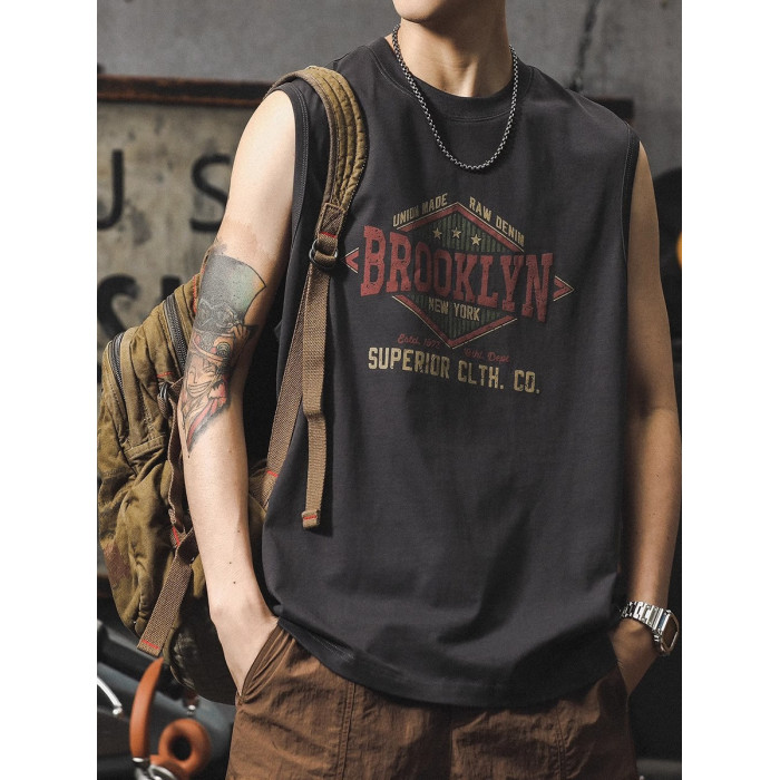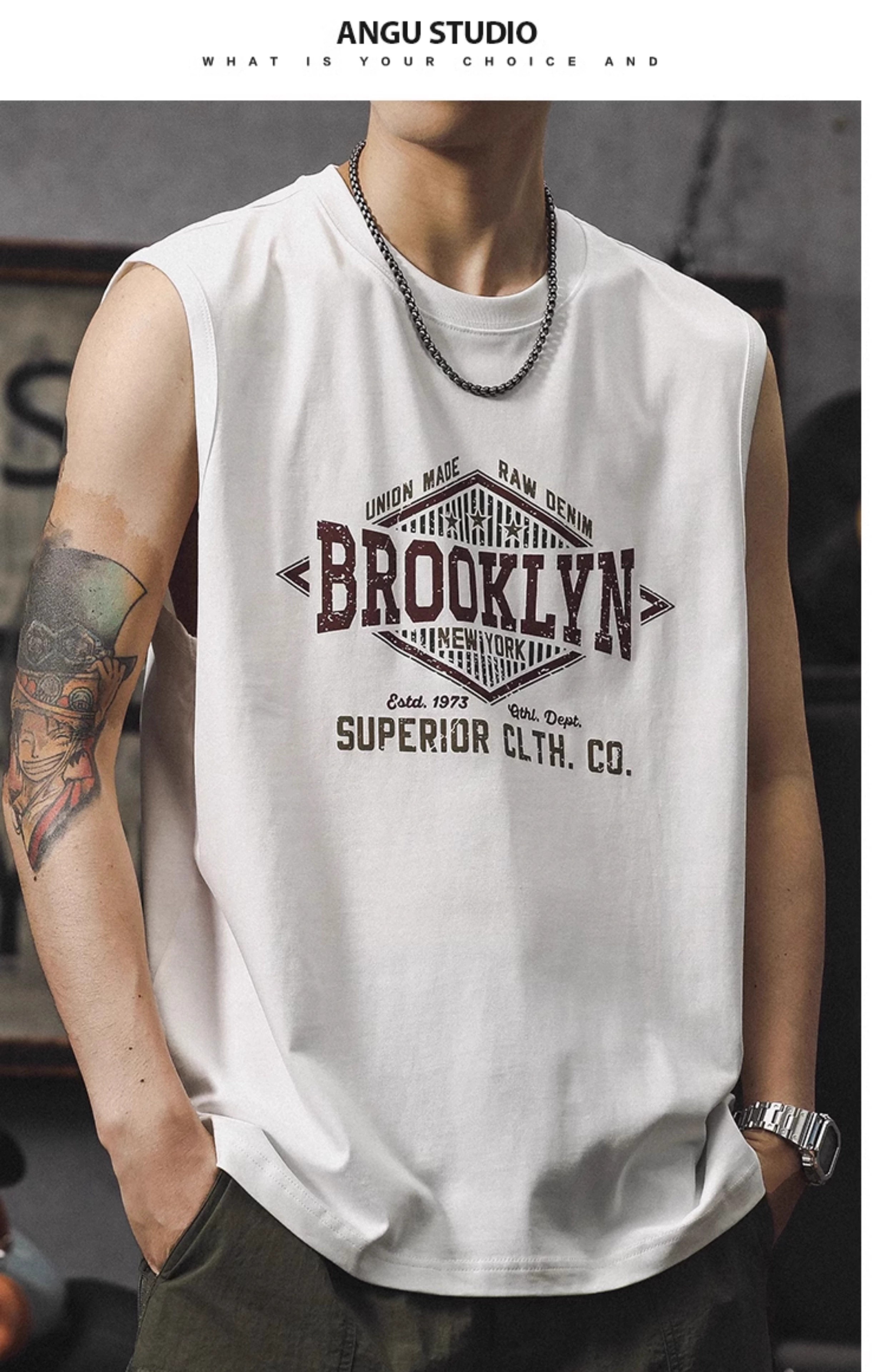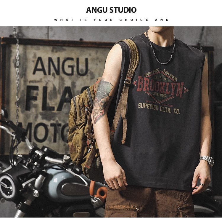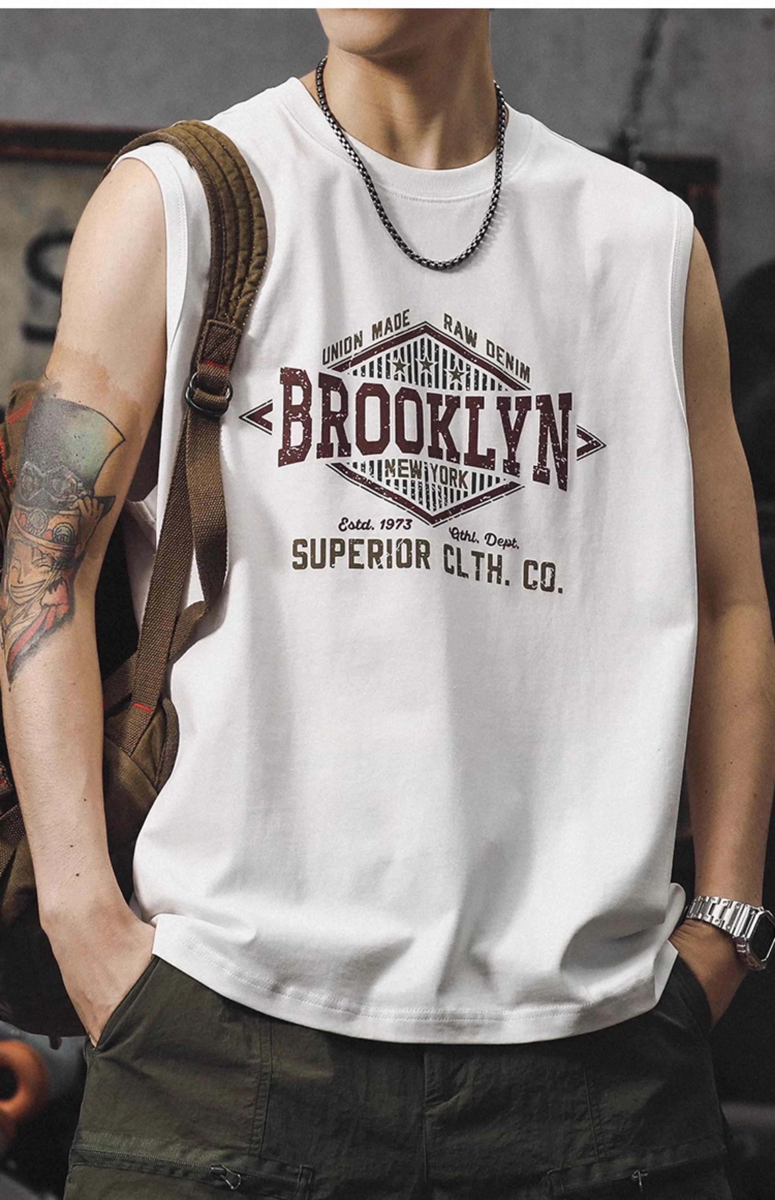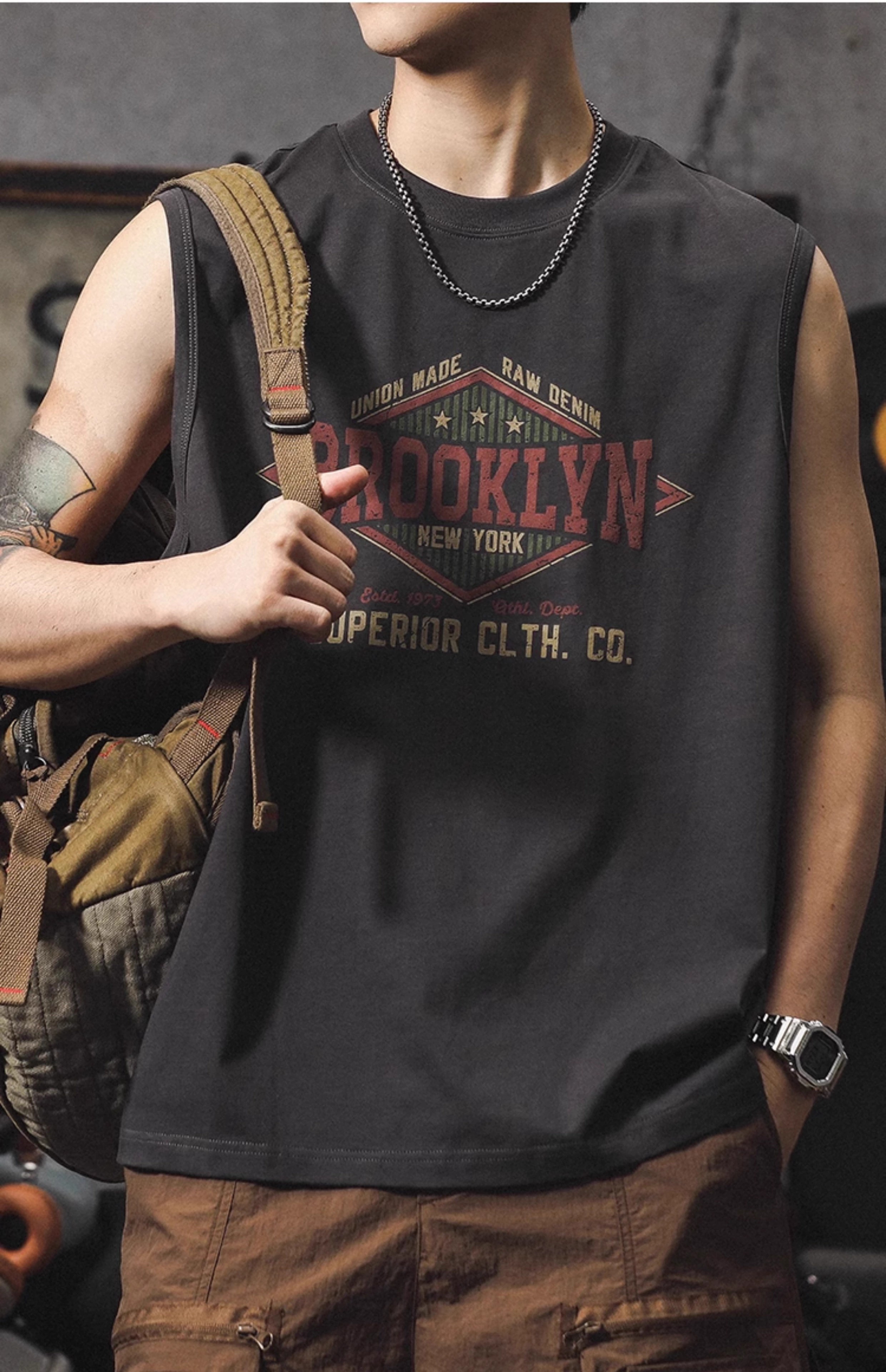 美式復古潮牌重磅280g純棉無袖背心男夏季寬松跨欄運動坎肩T恤潮