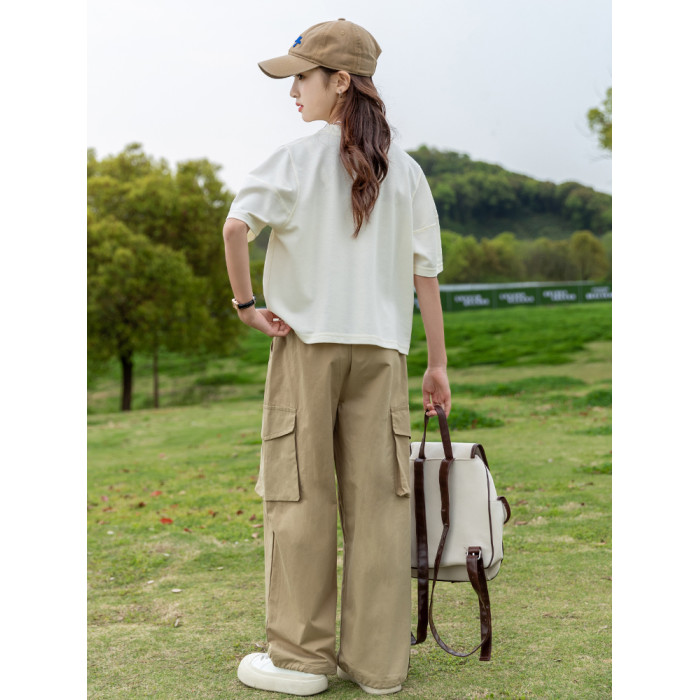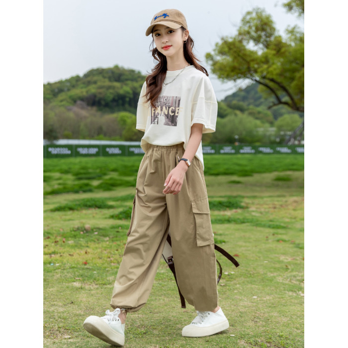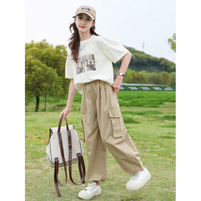 女童夏裝運動套裝2025新款兒童9大童女裝夏季短袖T恤工裝褲兩件套
