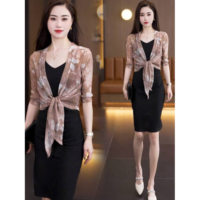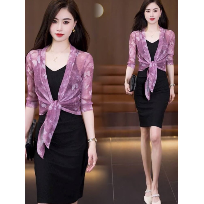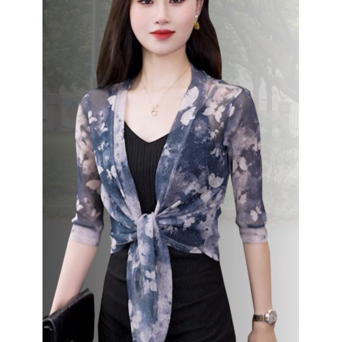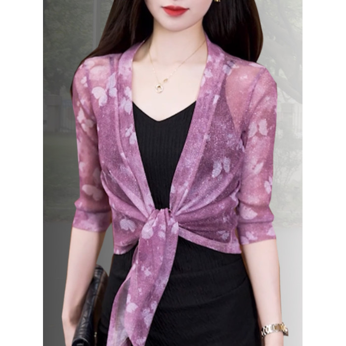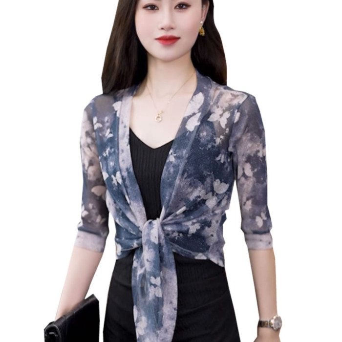 蕾絲中袖外搭網紗小披肩夏季雪紡防曬衣女短款配裙的百搭坎肩開衫