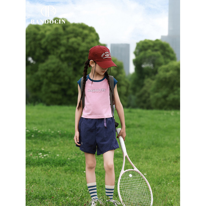 親子女童運動短袖t恤夏季薄款洋氣2025新款兒童夏裝插肩撞色上衣T