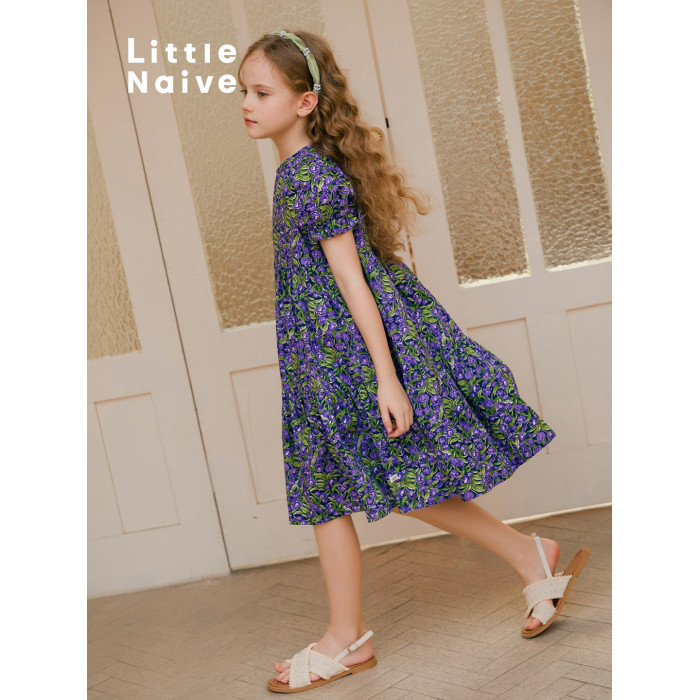 LittleNaive童裝 夏季女童法式連衣裙度假風中大童裙子兒童連衣裙