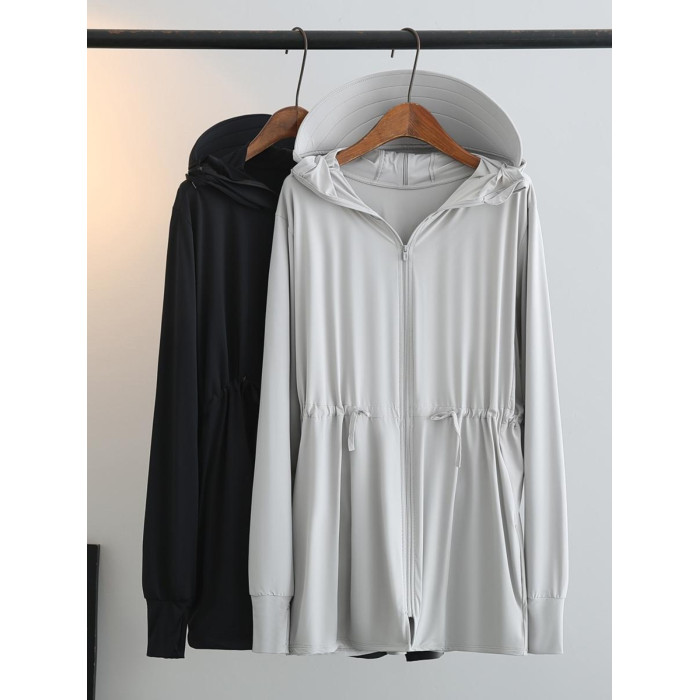 大碼冰絲防曬衣女夏季新款胖mm中長款收腰薄款防紫外線服透氣外套