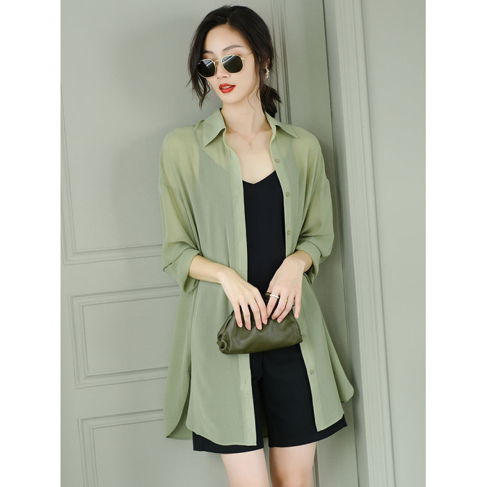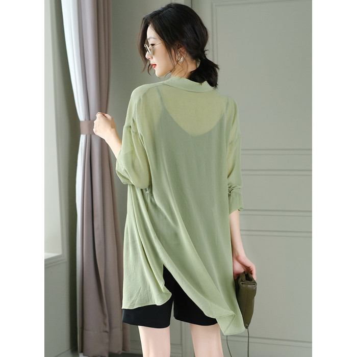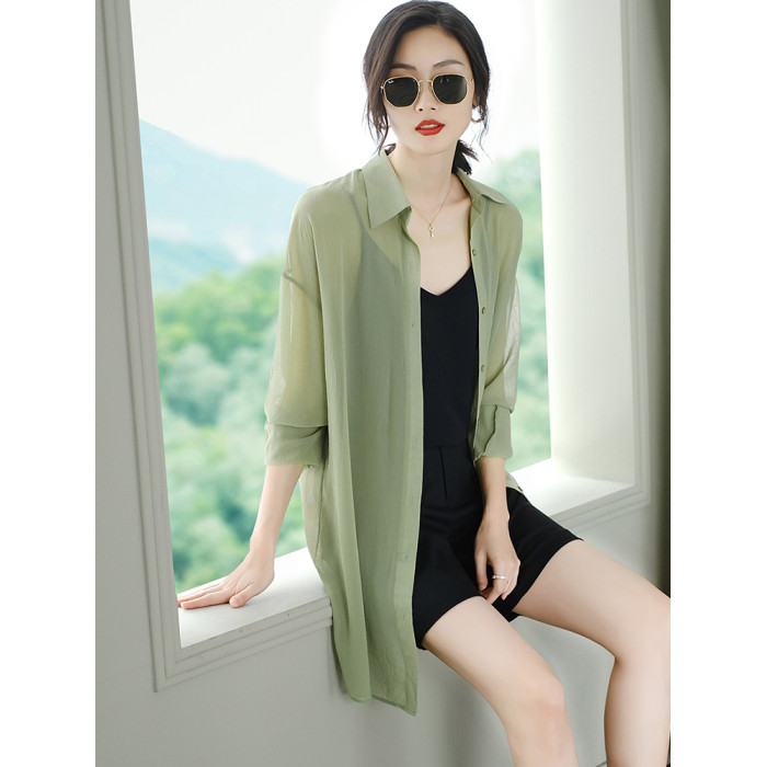 防曬衣女襯衫2025新款夏季外搭開衫配吊帶裙子薄款桑蠶絲披肩外套