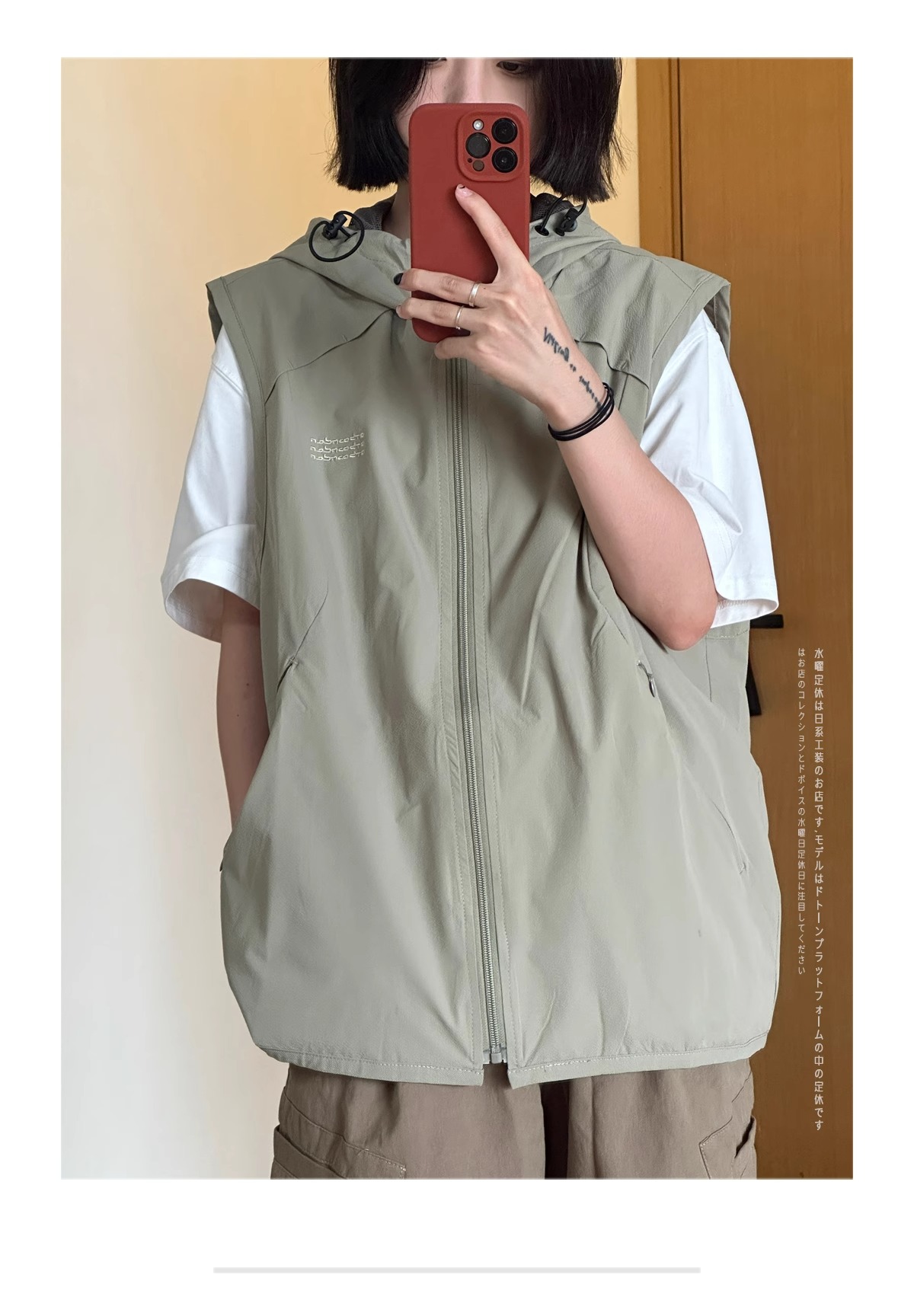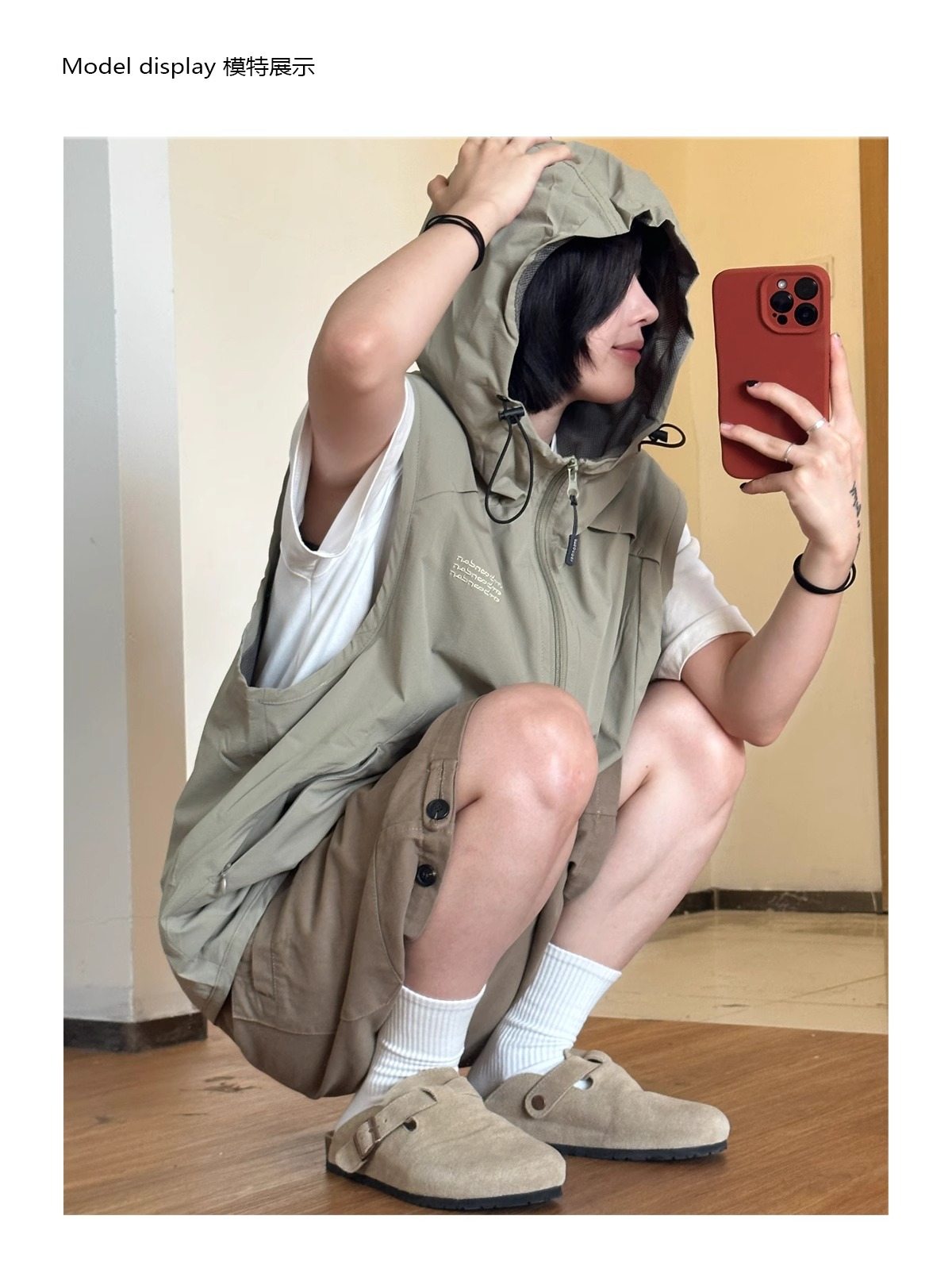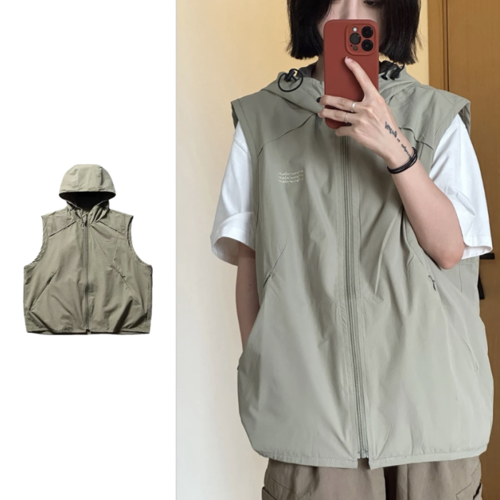 兩件裝/單件夏山系戶外連帽馬甲男女肌理感坎肩口袋拉鍊機能外套