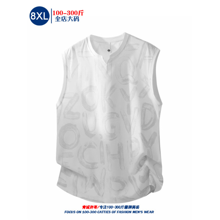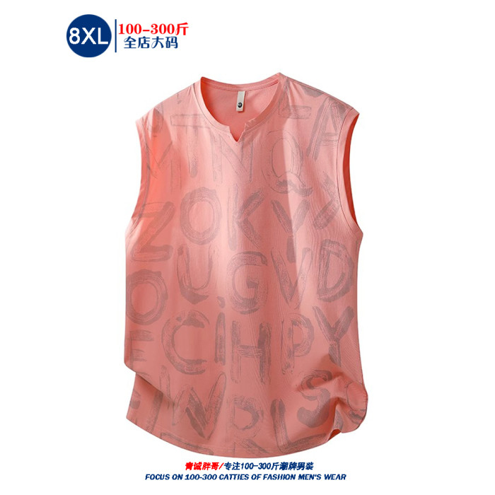 青誠胖哥大碼V領背心男夏季寬松休閒加肥加大胖子運動無袖T恤衫潮