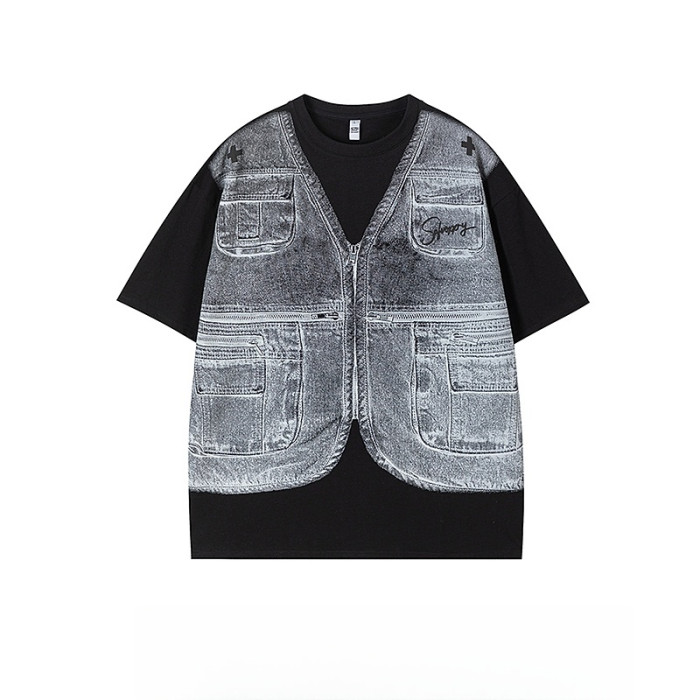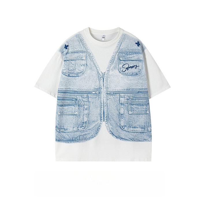 DEWELVUM 25ss 小衆馬甲圖案寬松情侶休閒百搭圓領短袖T恤