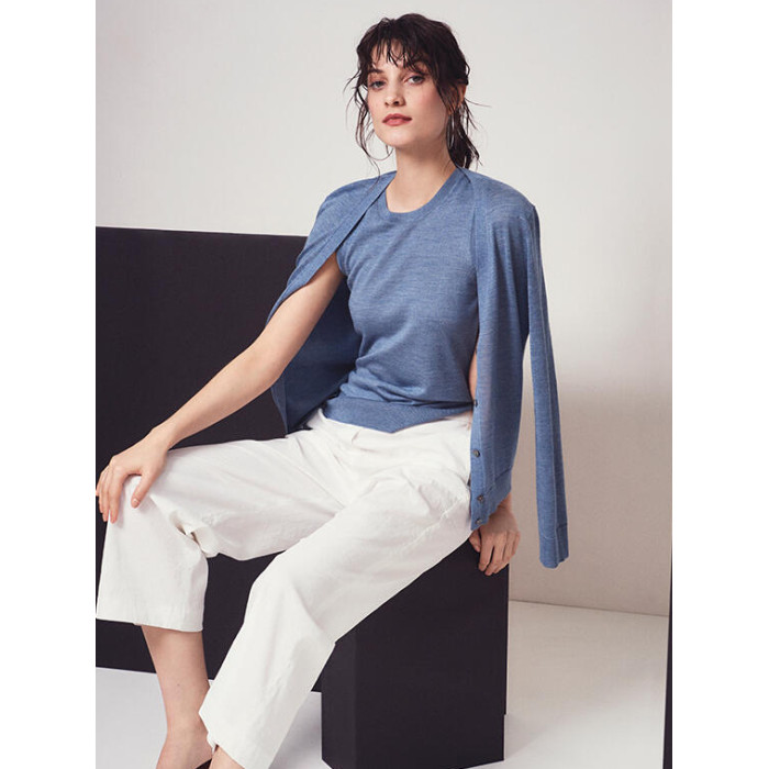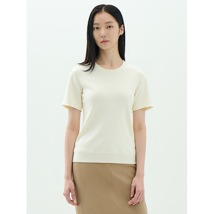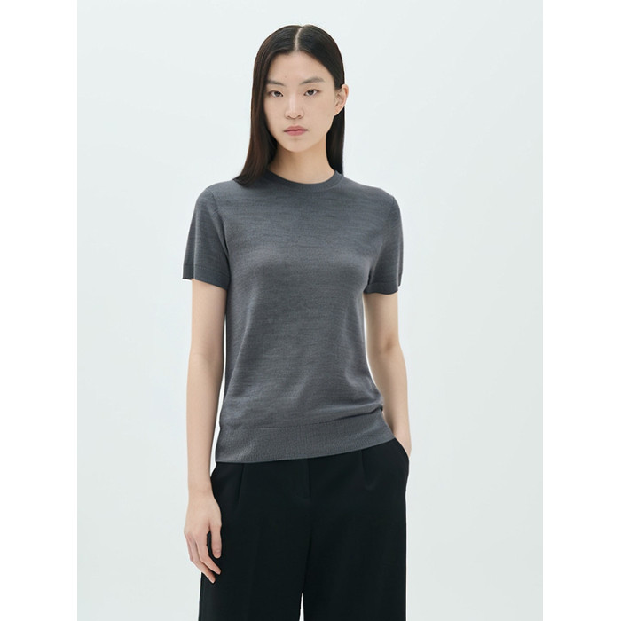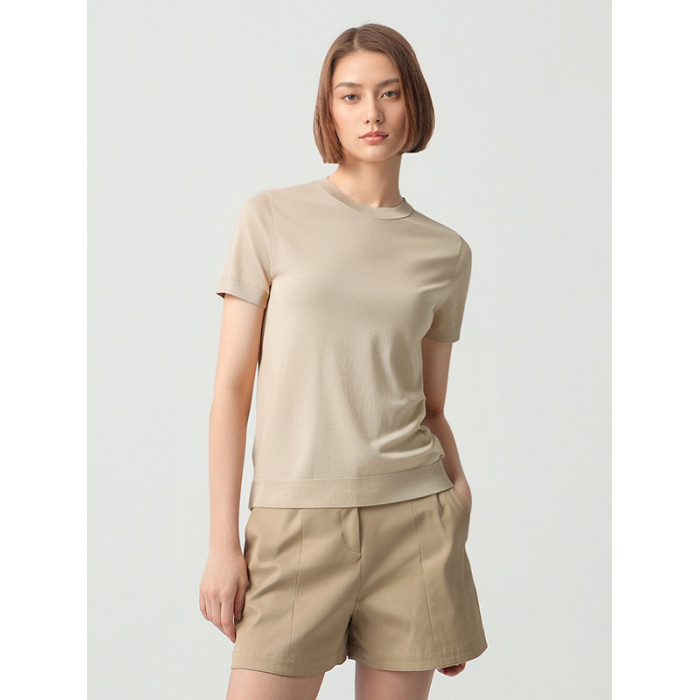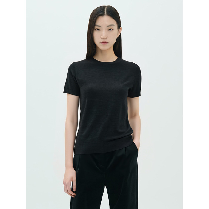 TH上班基礎內搭圓領短袖桑蠶絲山羊絨針織女T恤打底極簡針織衫