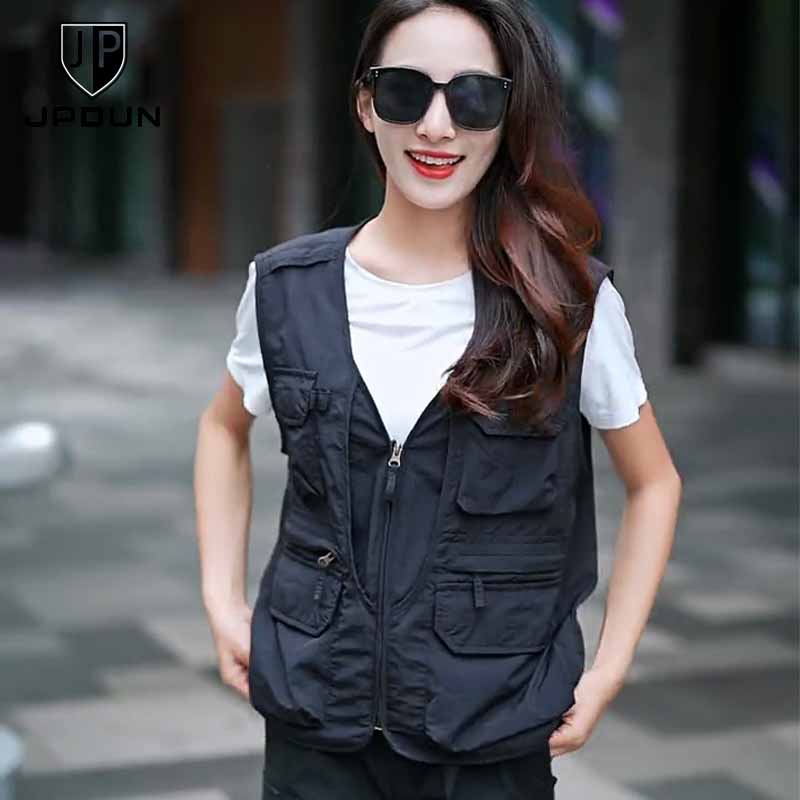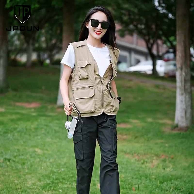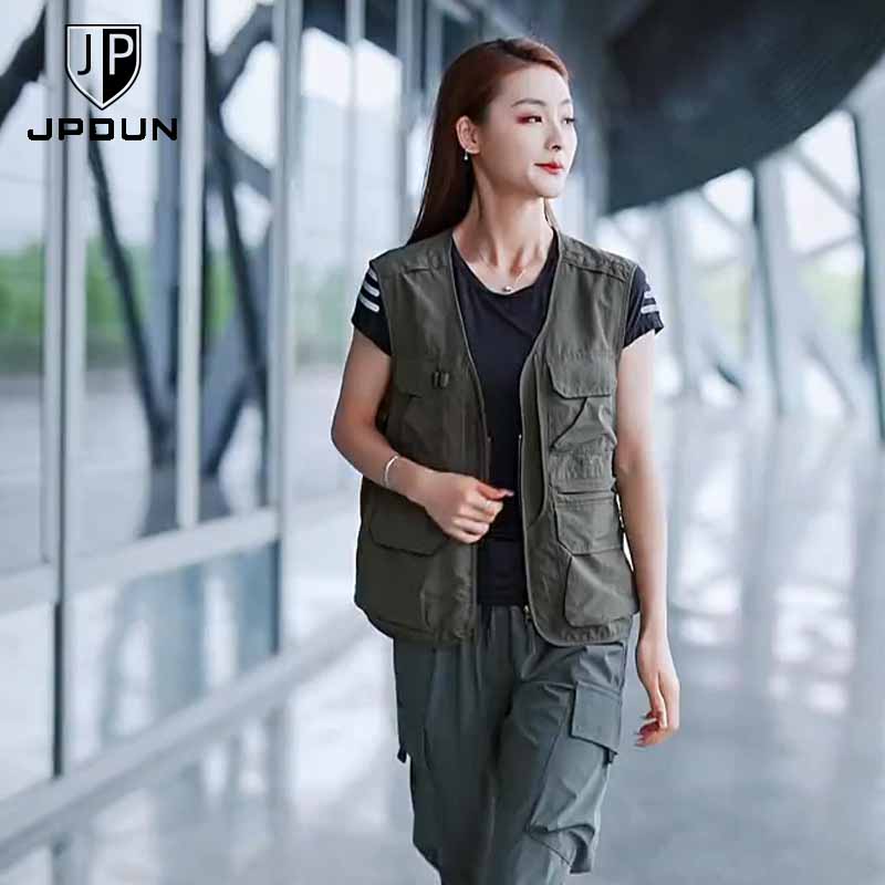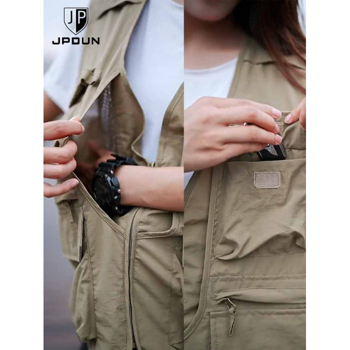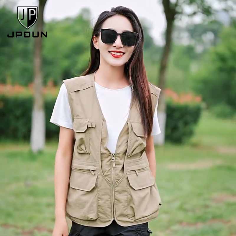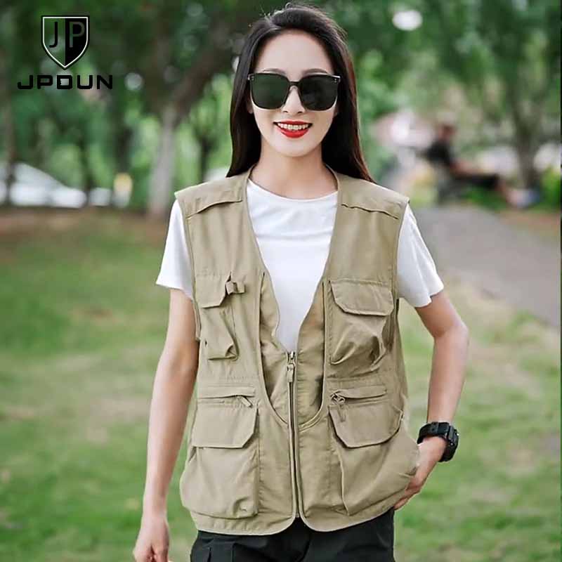 JPDUN/夏季薄款男女馬甲多口袋工裝坎肩戶外寬松登山攝影速乾馬夾