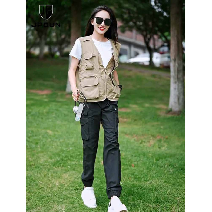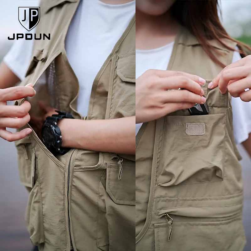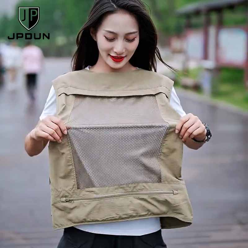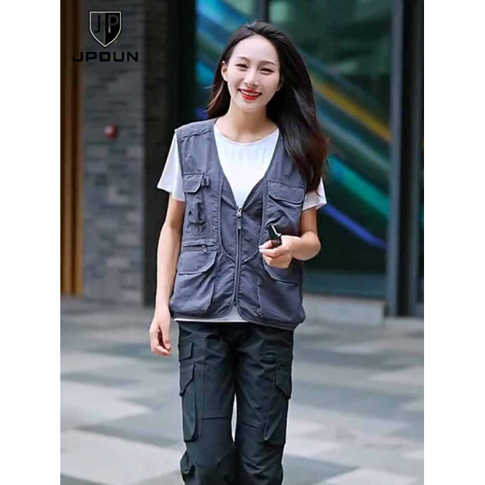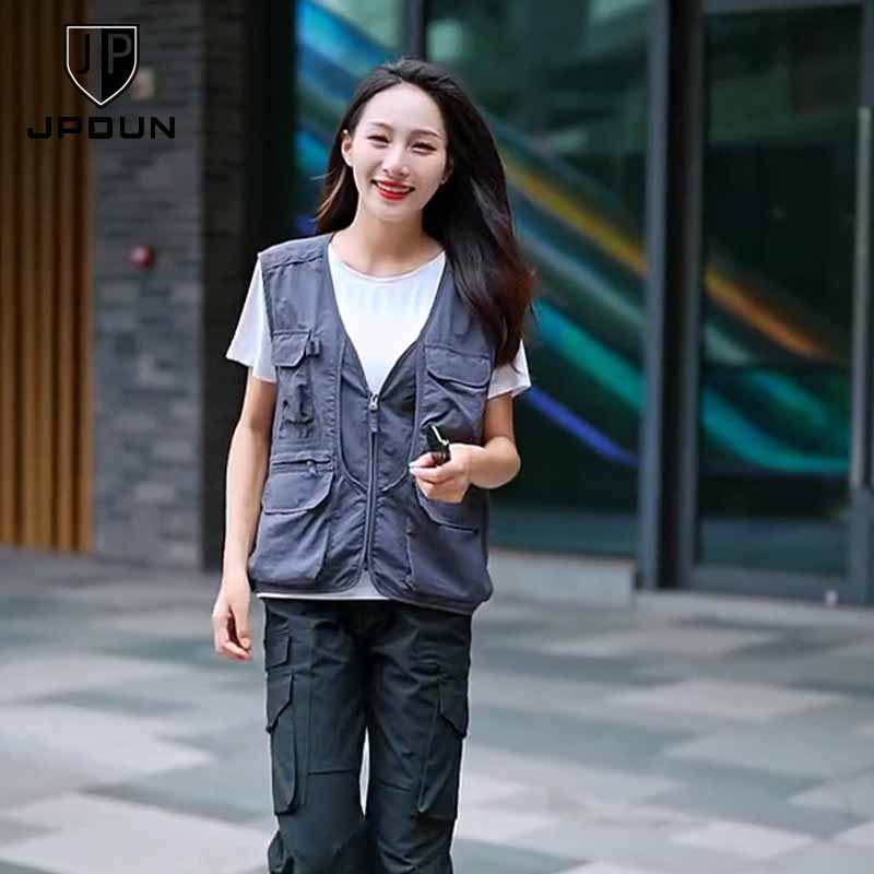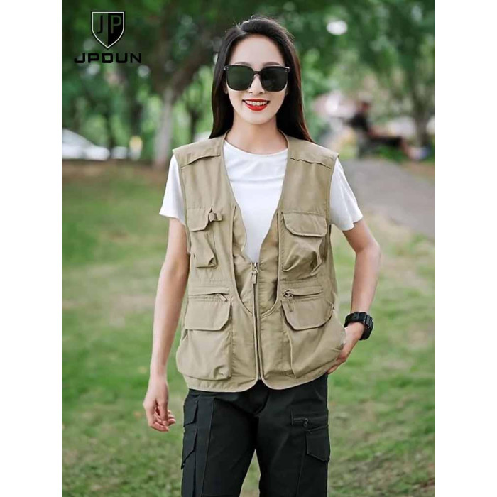 JPDUN/夏季薄款男女馬甲多口袋工裝坎肩戶外寬松登山攝影速乾馬夾