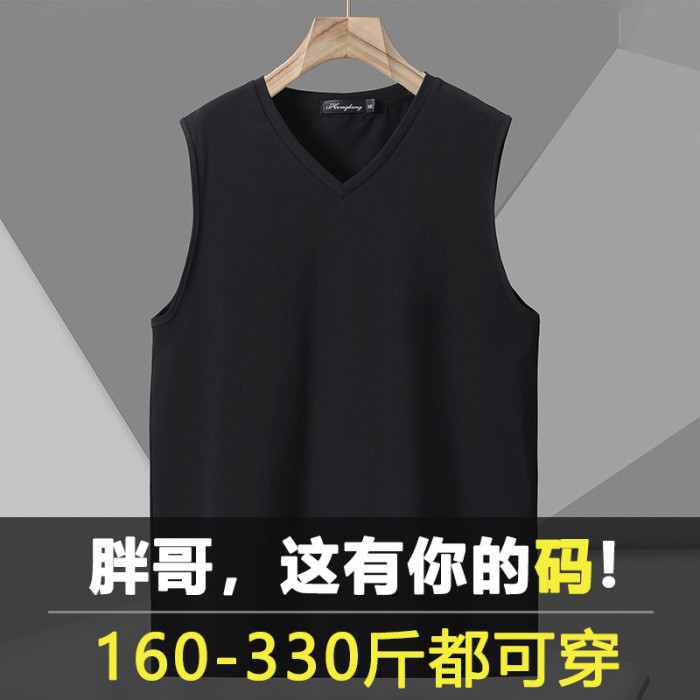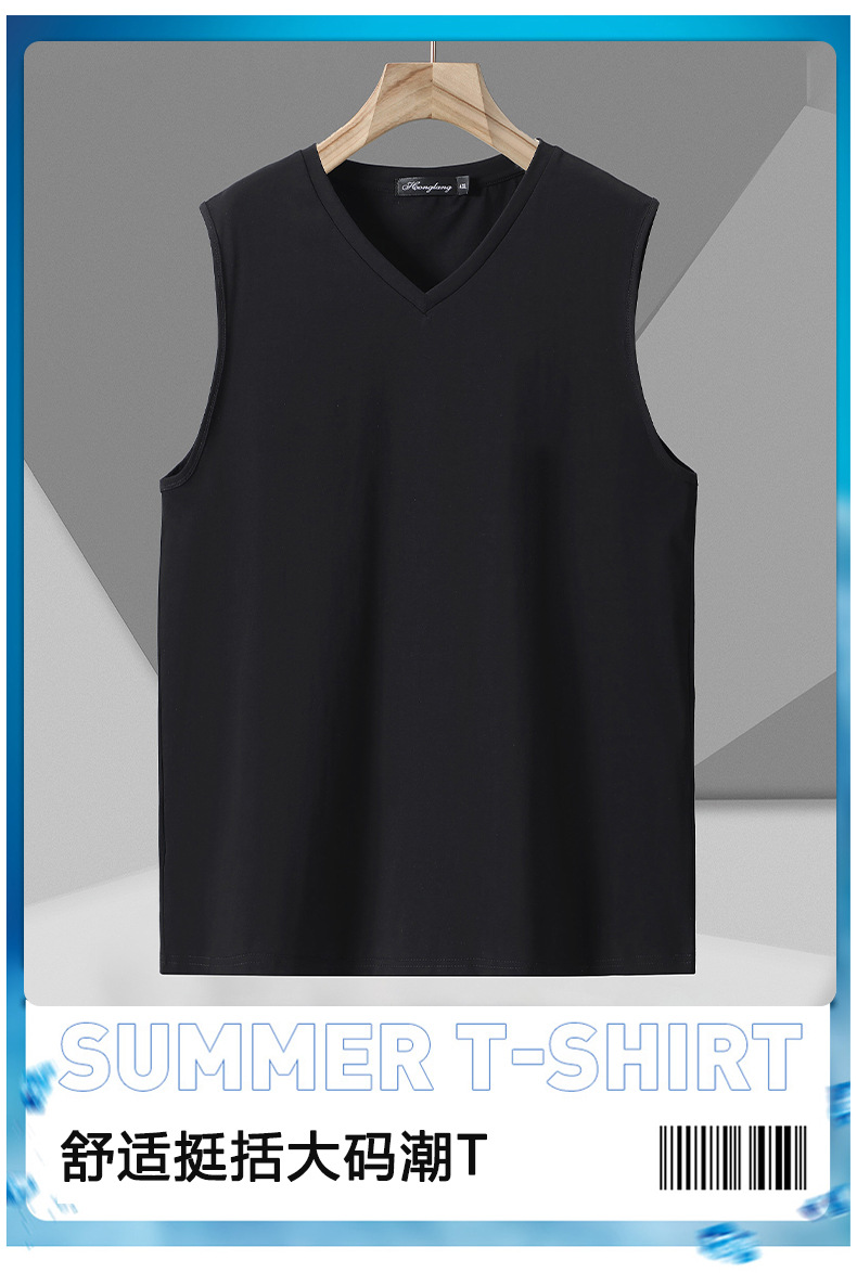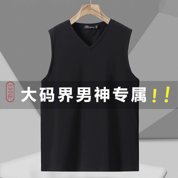 300斤夏裝男士背心無袖T恤V領加肥加大碼棉t恤寬松跨欄運動打底衫