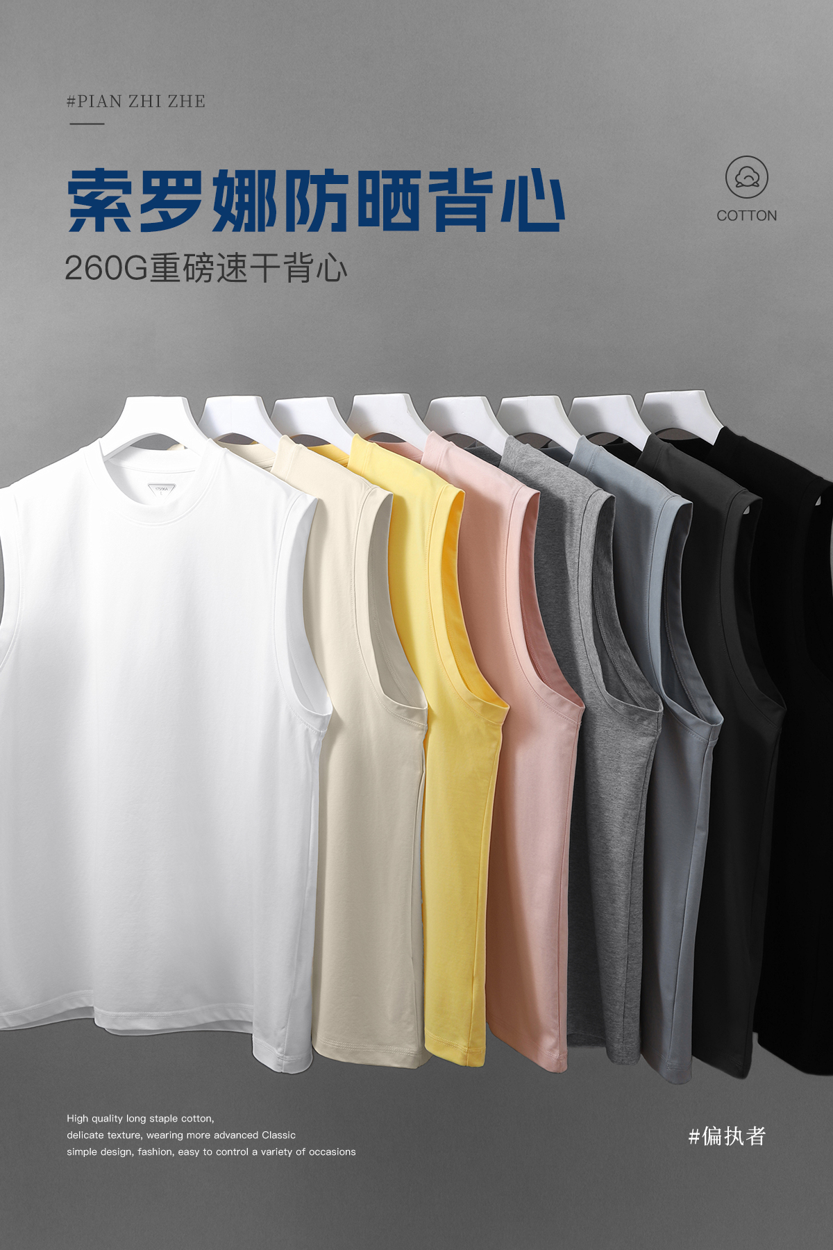 【抗菌索羅那】260G重磅防曬速乾運動背心 夏日透氣無袖坎肩男款