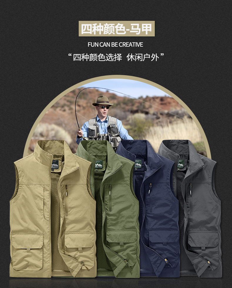 啄木鳥新款春秋戶外休閒馬甲男士多口袋速乾透氣工裝攝影釣魚馬夾