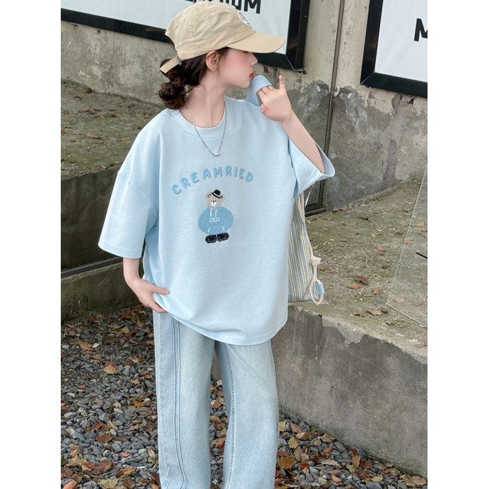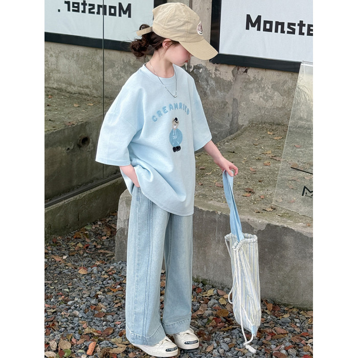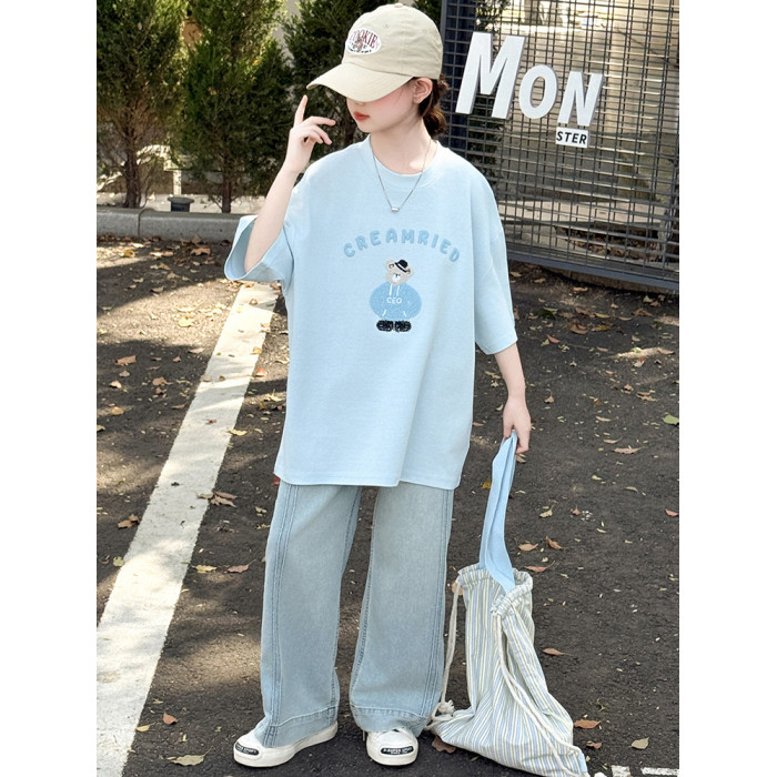 女童短袖T恤夏季純棉2025新款兒童女孩中大童洋氣上衣半袖薄套裝
