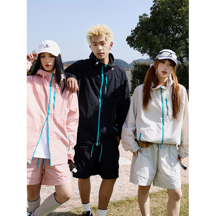 情侶裝夏季防曬服皮膚衣套裝UPF100+輕薄戶外防紫外線短褲兩件套