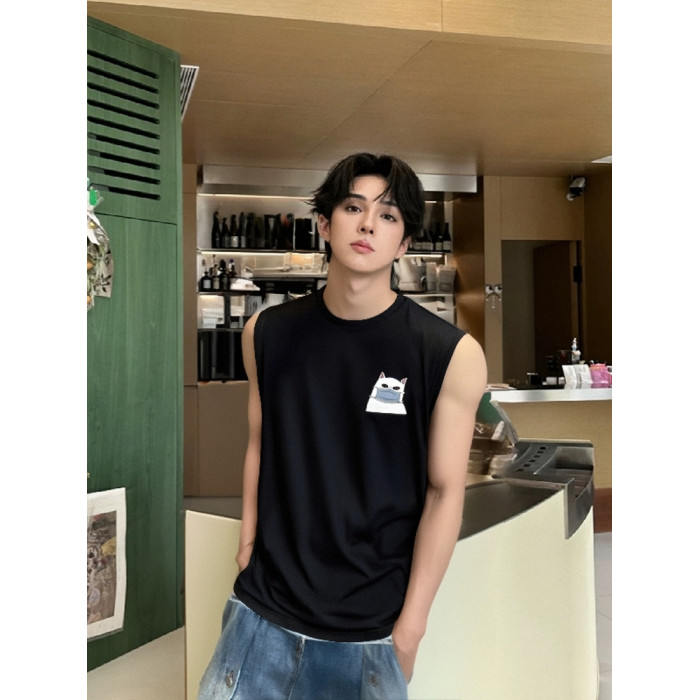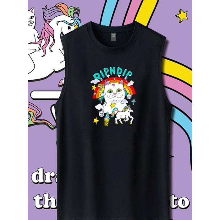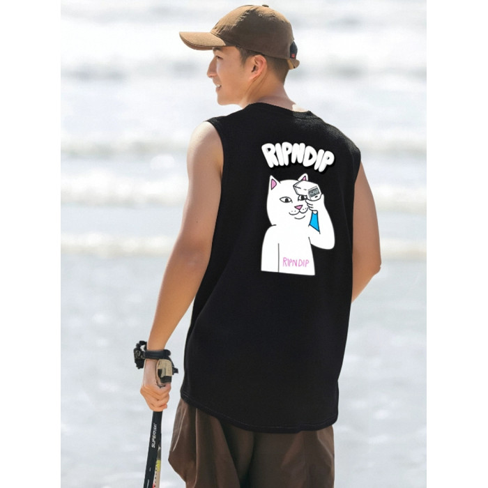RIPNDIP賤貓卡通中指貓運動純棉時尚原宿風搞怪大碼背心無袖T恤