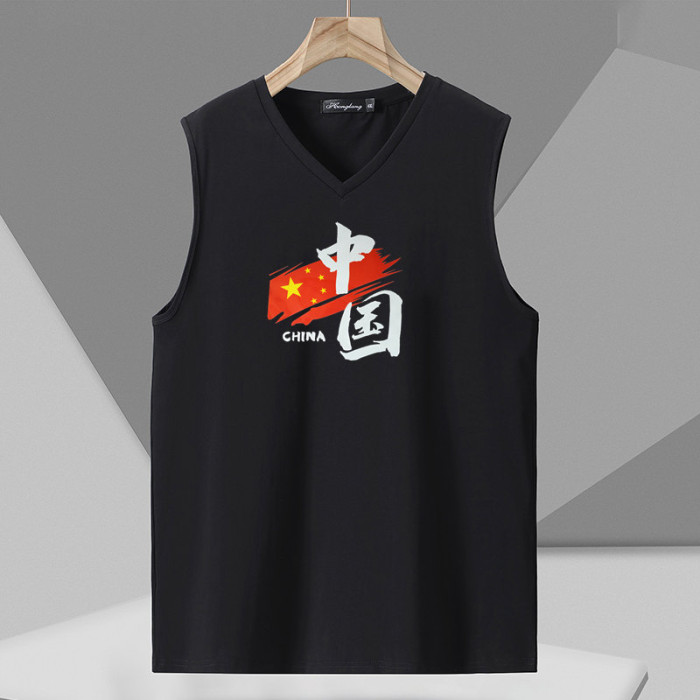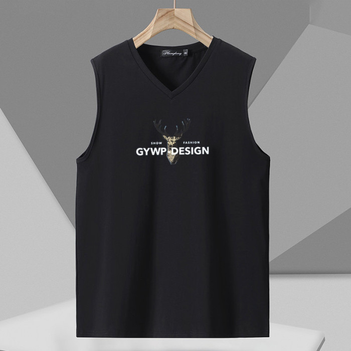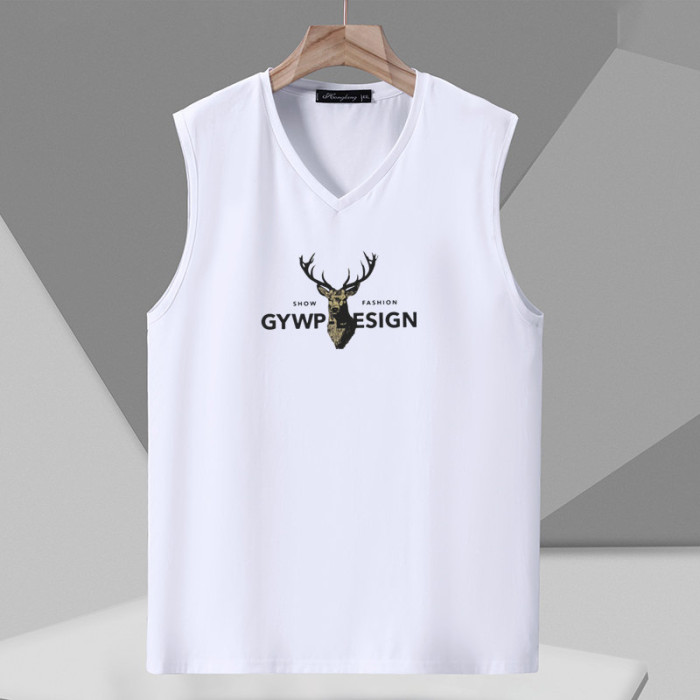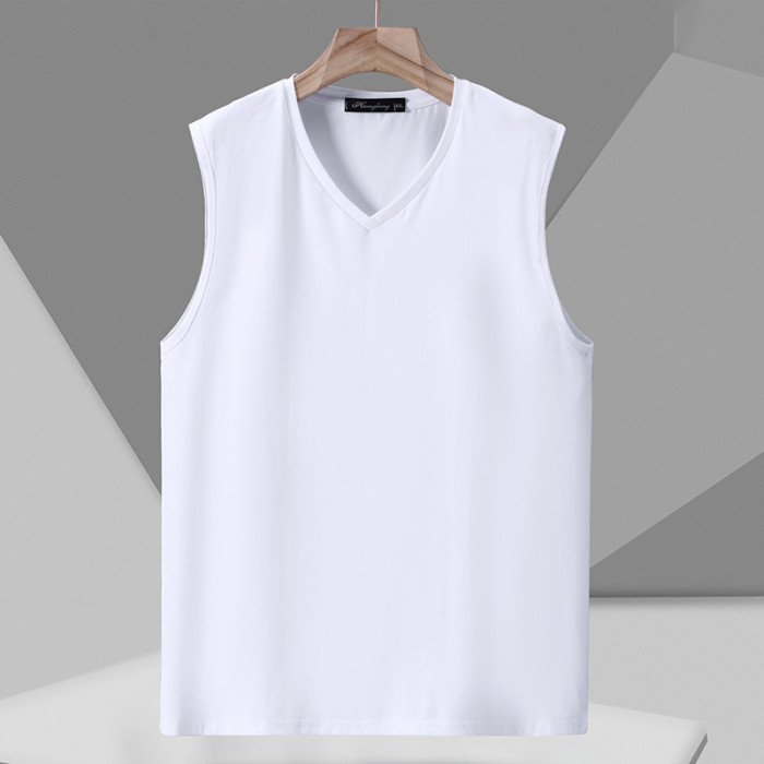 大碼純棉背心男夏季新款白色無袖t恤寬松休閒v領坎肩健身運動汗衫
