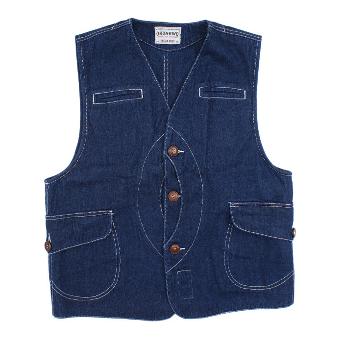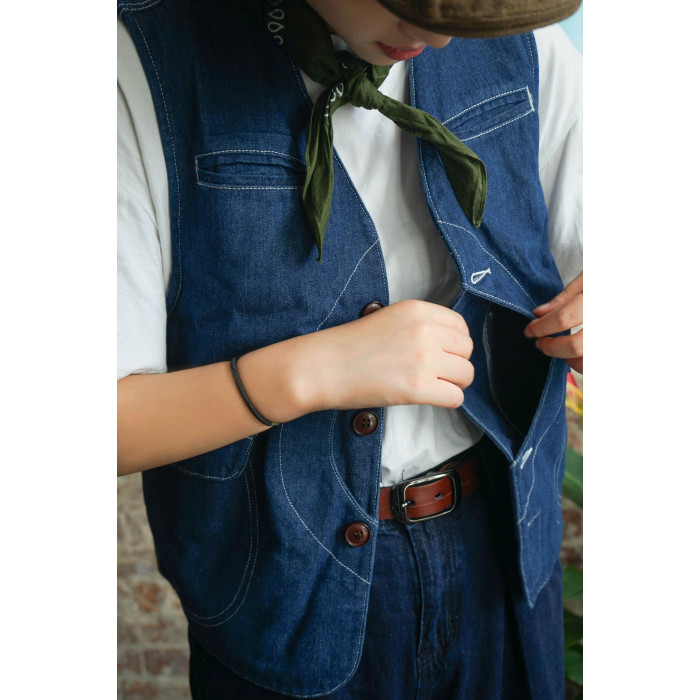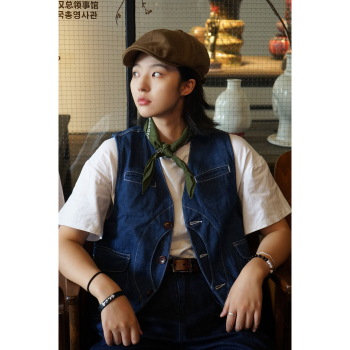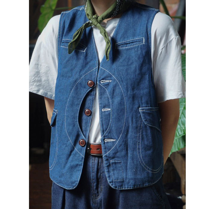 未兌商店| 春秋新款復古牛仔阿美哢嘰男女百搭多口袋重磅工裝馬甲