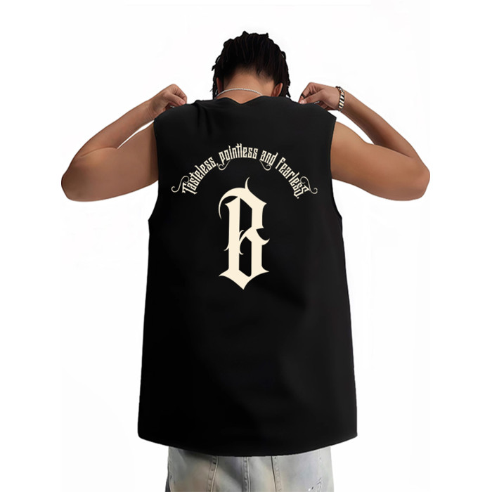 BONELESS BTW美式背心男女夏季新款高街運動寬松休閒圓領無袖t恤