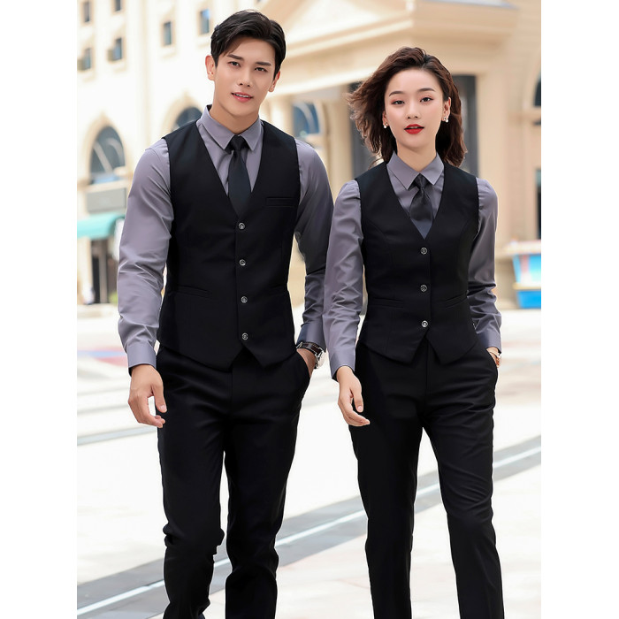 【女】 黑色馬甲+西褲+灰襯衫