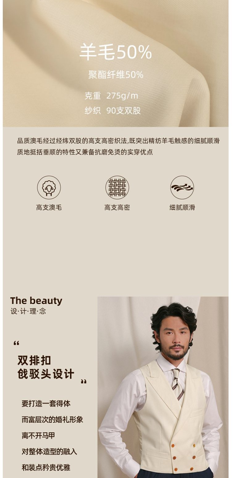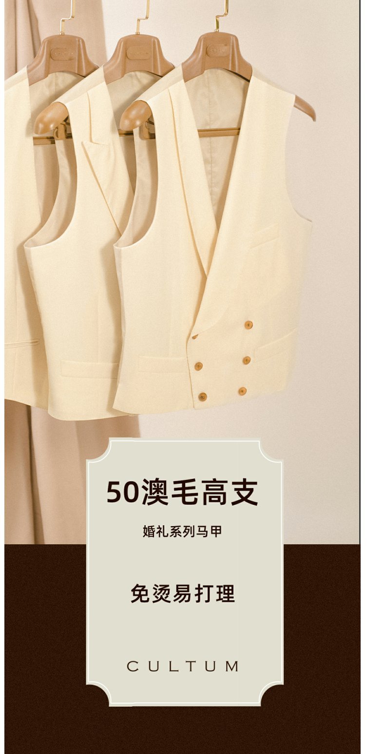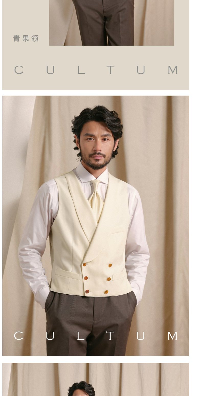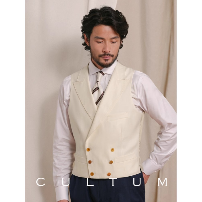 【澳毛】CULTUM免熨燙青果領雙排釦結婚新郎婚禮搭配西裝白馬甲男