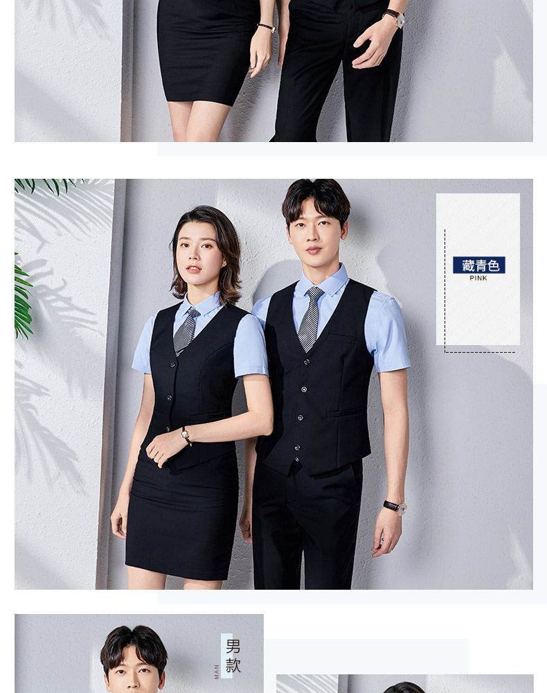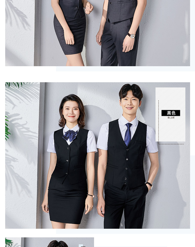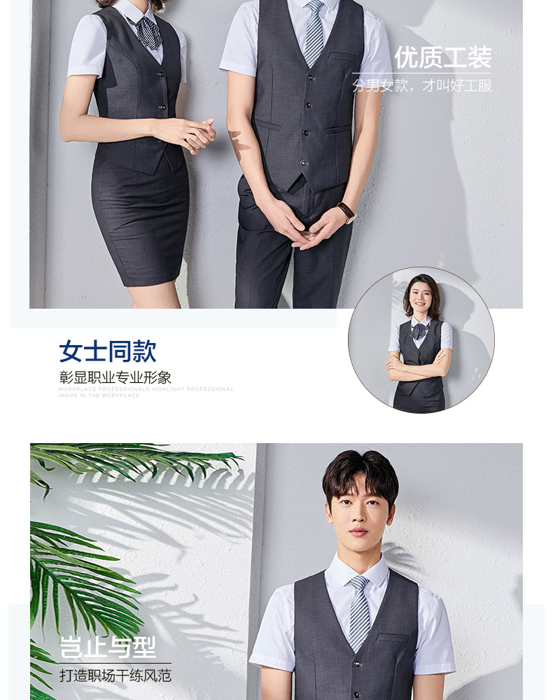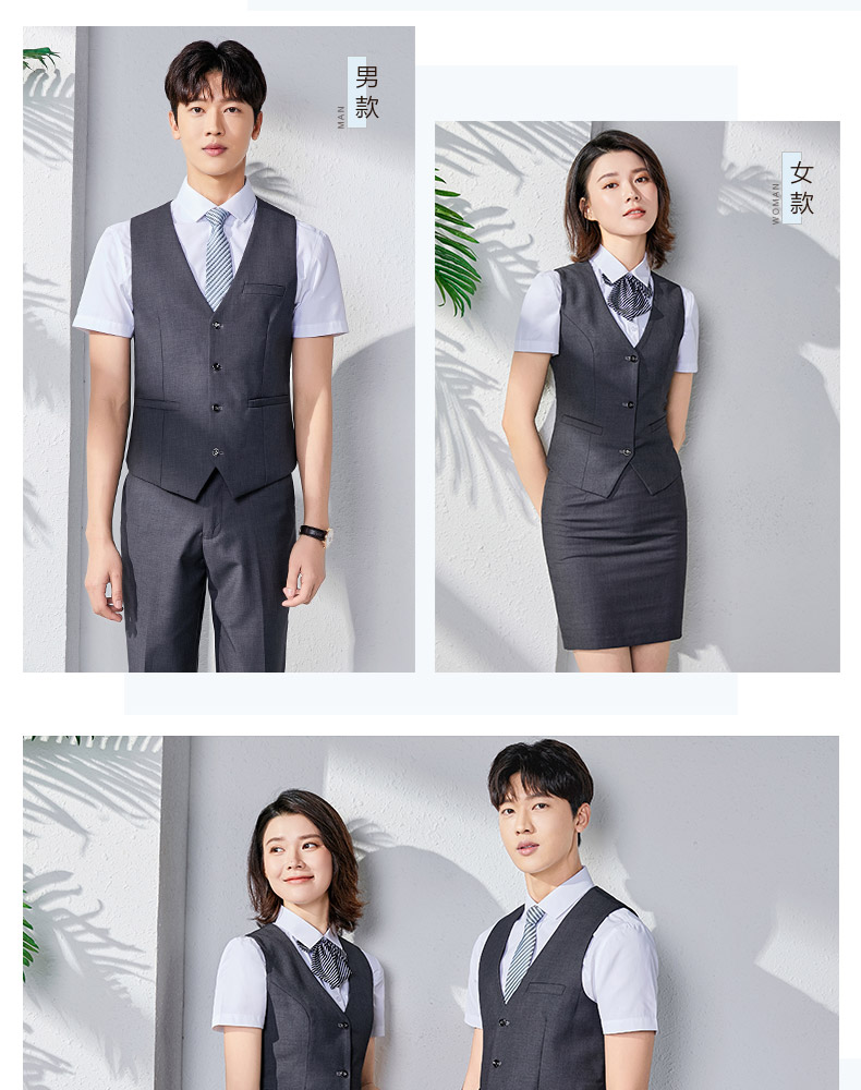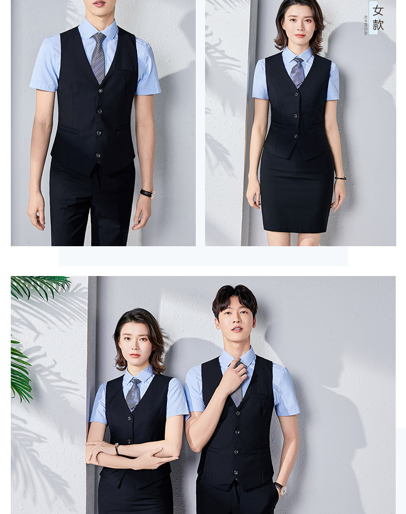 職業裝男女同款正裝短袖襯衣工裝銀行酒店前台經理工作服馬甲套裝