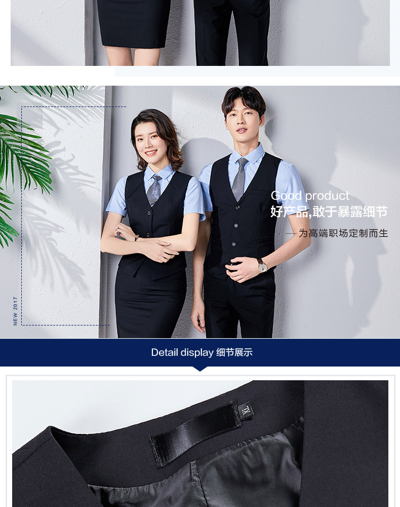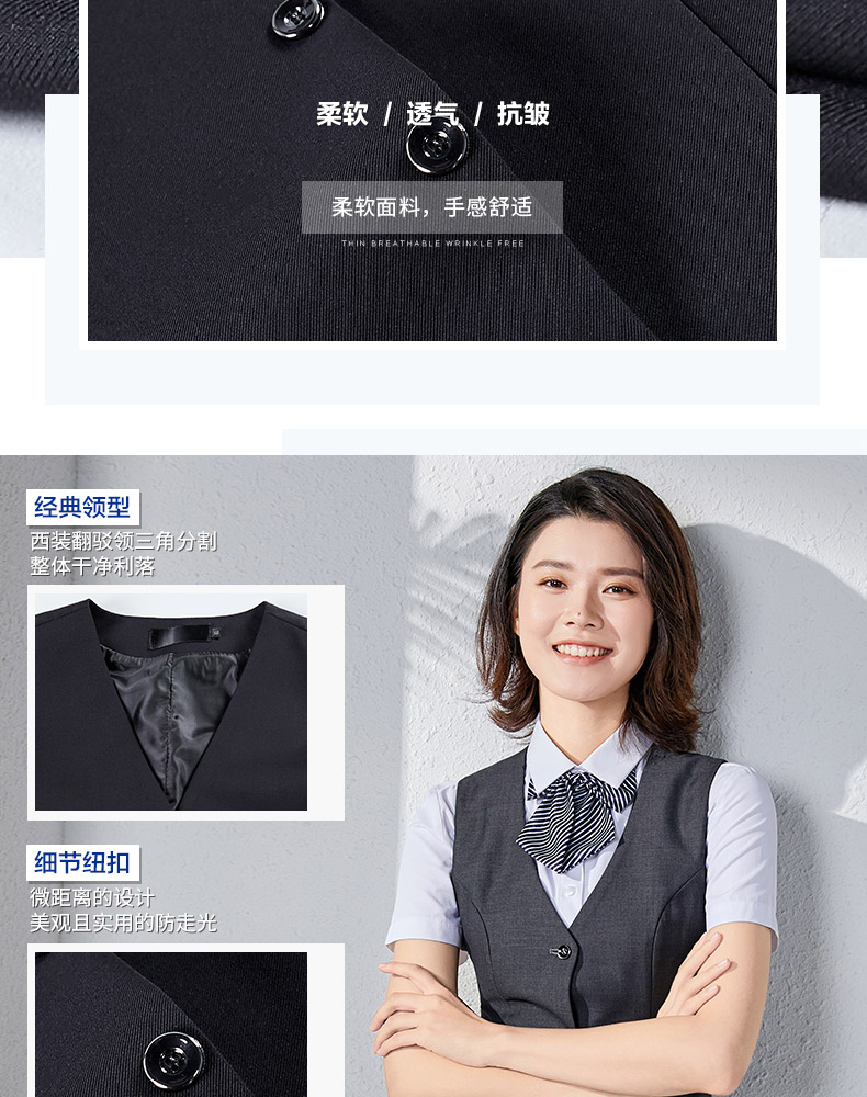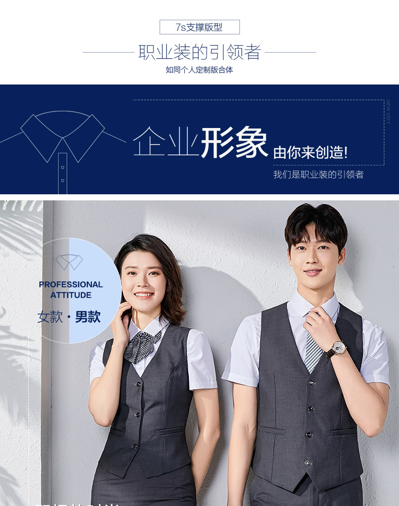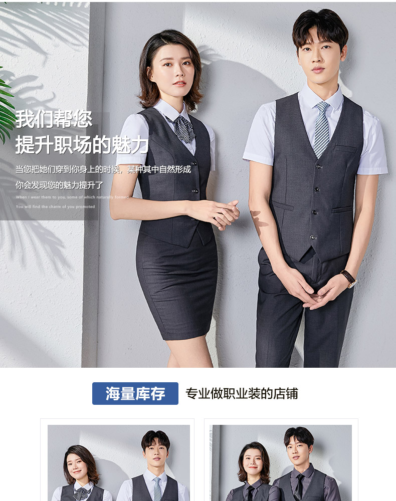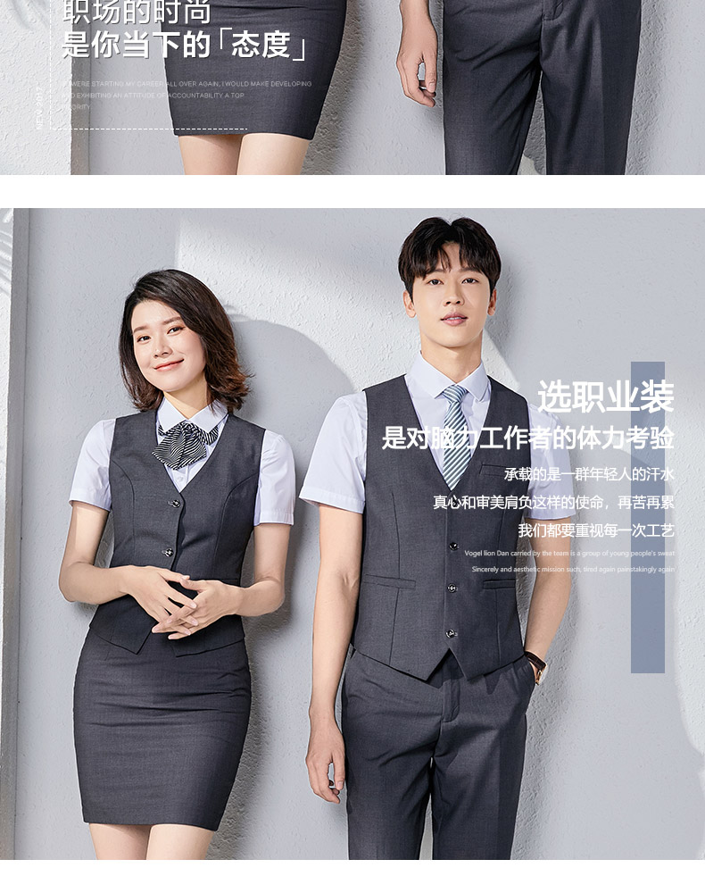 職業裝男女同款正裝短袖襯衣工裝銀行酒店前台經理工作服馬甲套裝