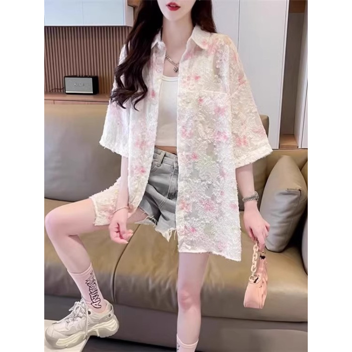 英國VICTORIA'S MISS冰絲薄款雪紡襯衫女生夏新款涼感開衫防曬衣