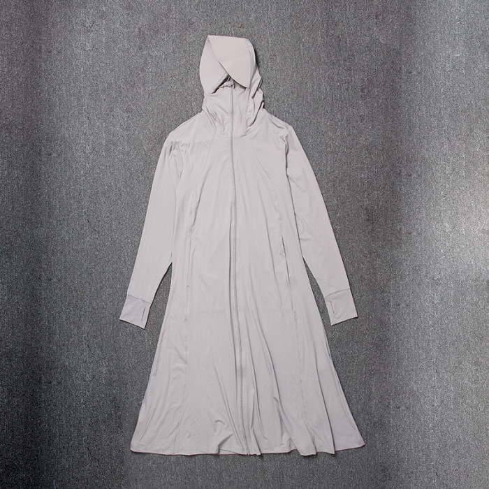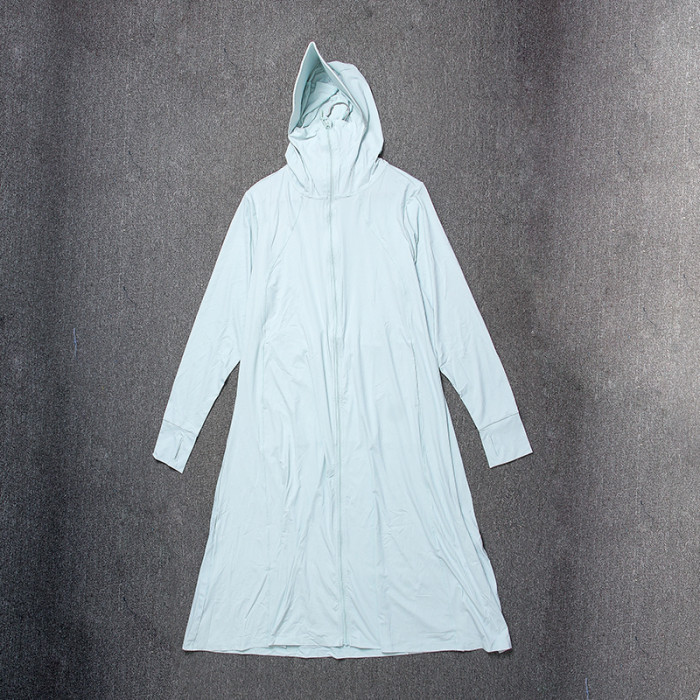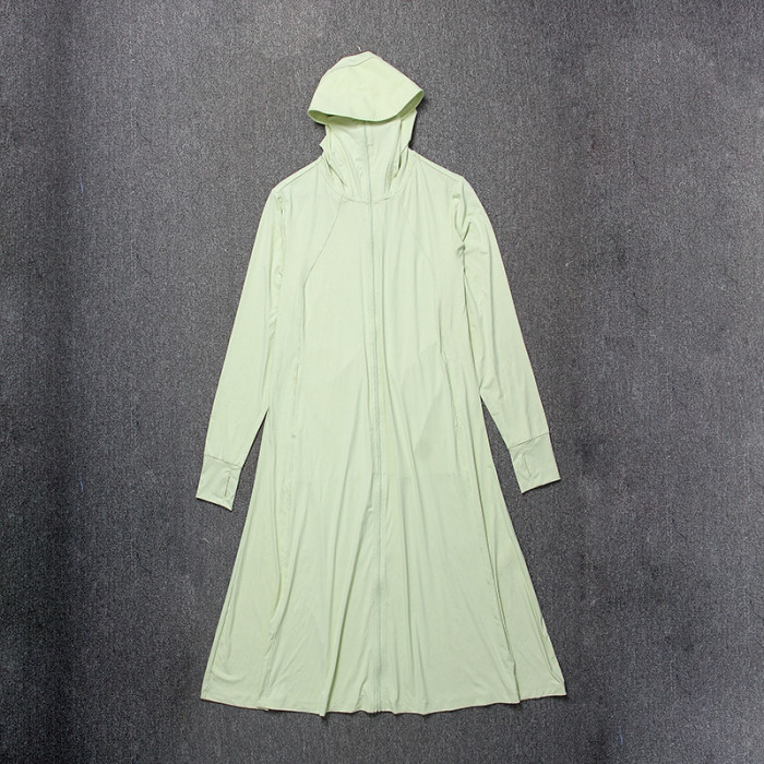 夏季新品純色連帽大帽簷拉鍊彈力款女士長款防曬衣外套大碼胖MM