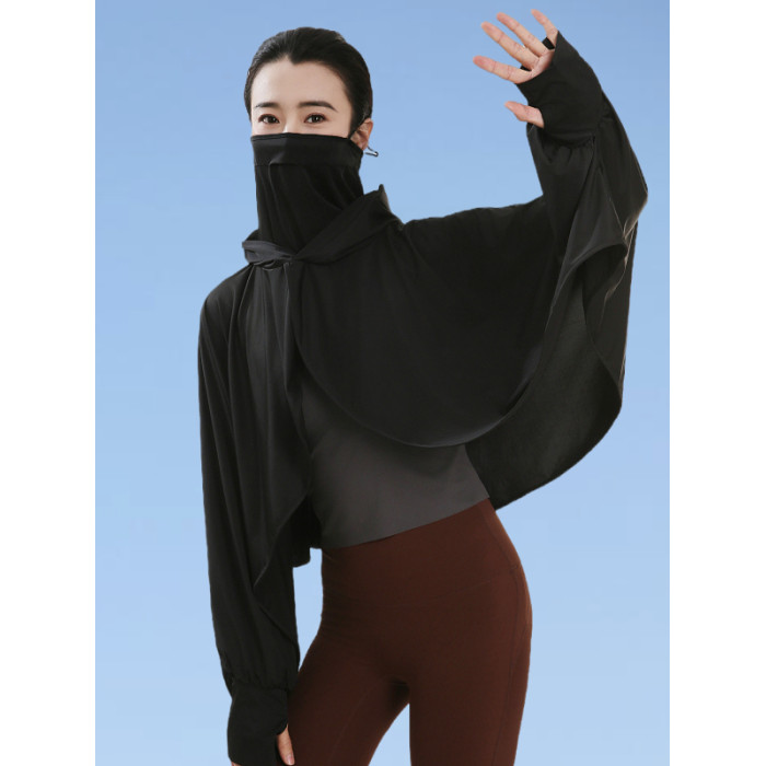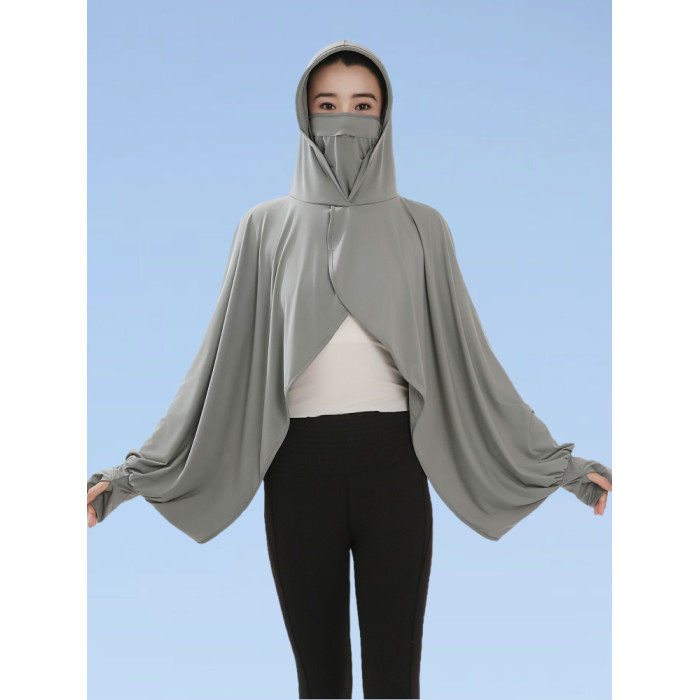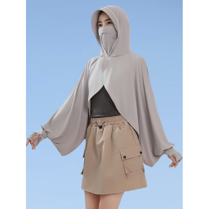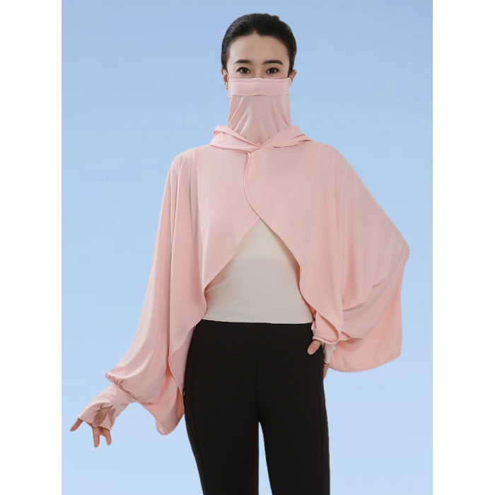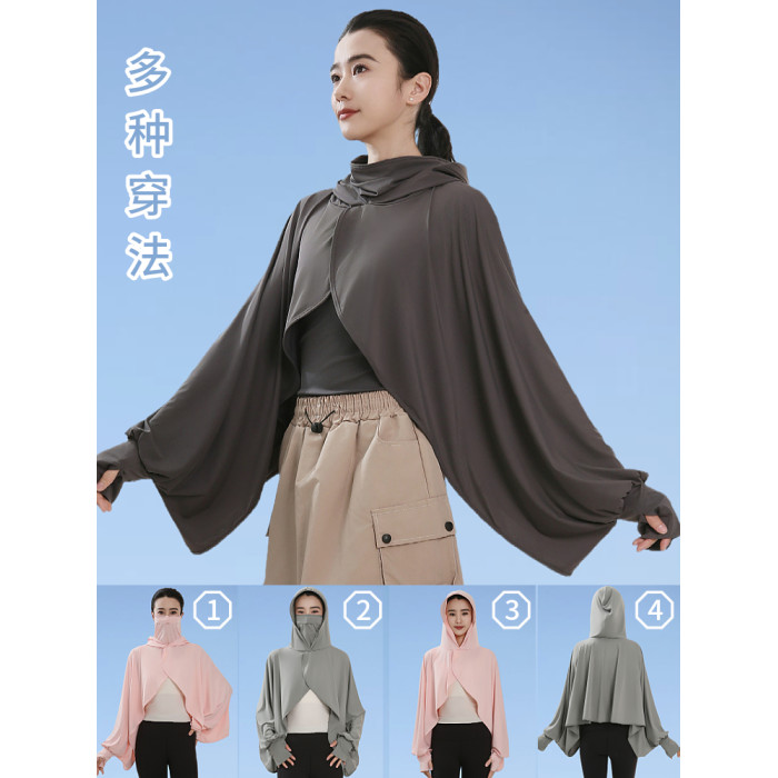 防曬披肩面罩帽子一體衣女夏季騎車開車連帽薄款罩衫透氣冰絲罩衫