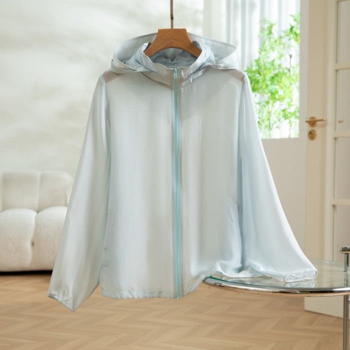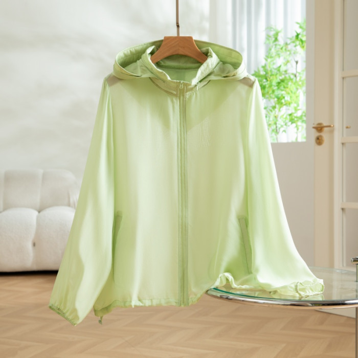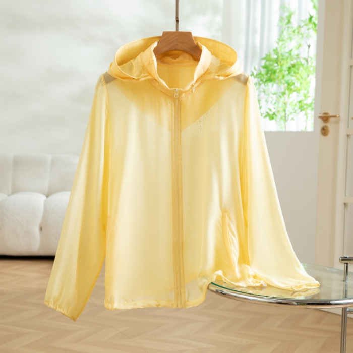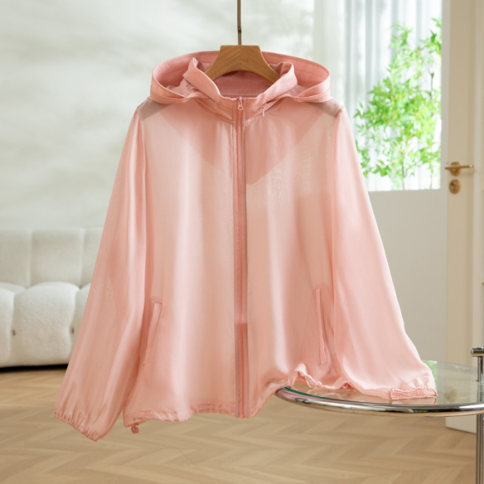 2025新款真絲桑蠶絲夏季連帽披肩純色透氣短款防曬衣
