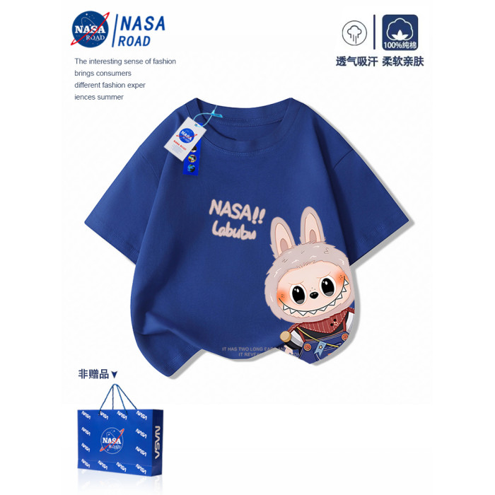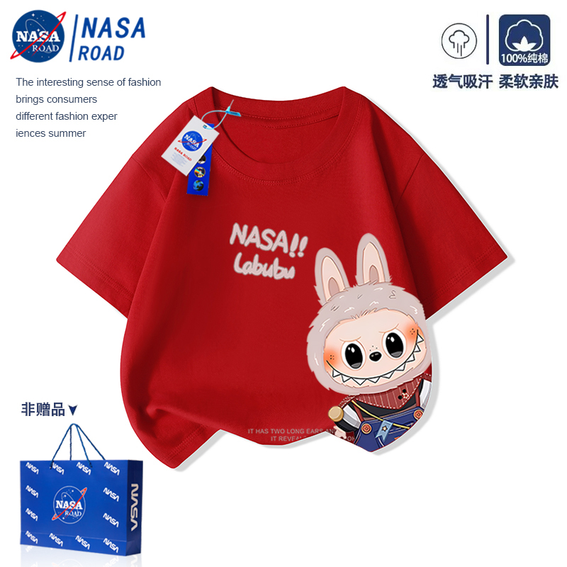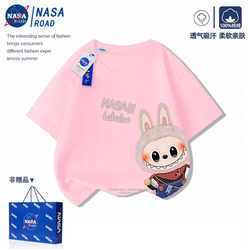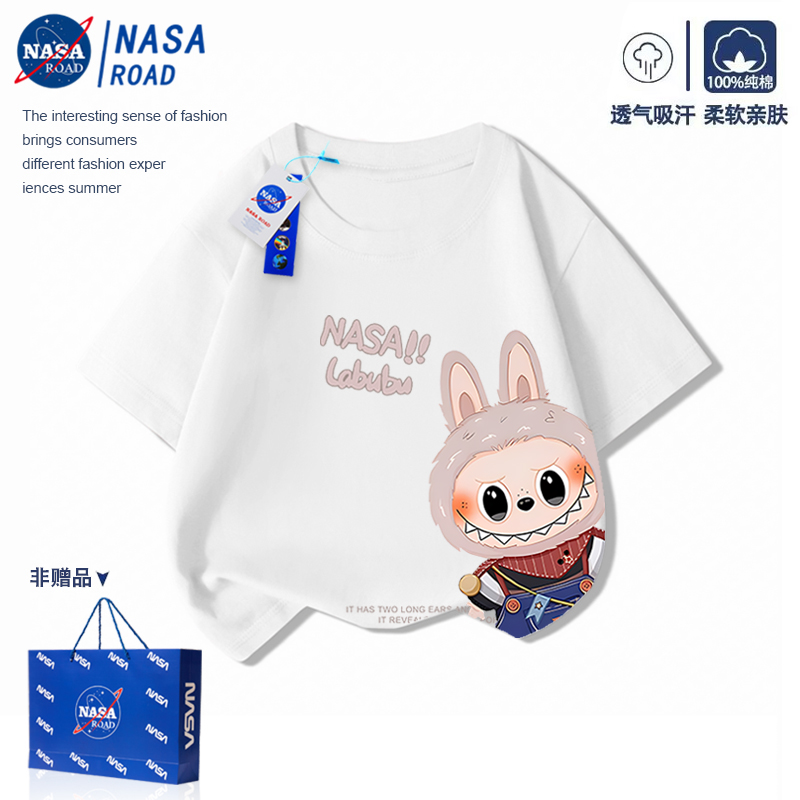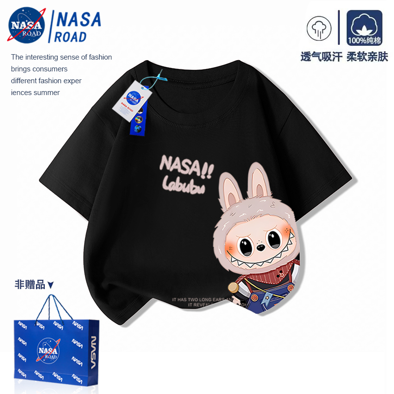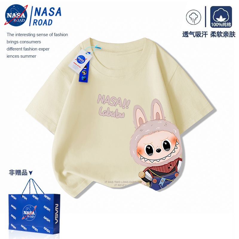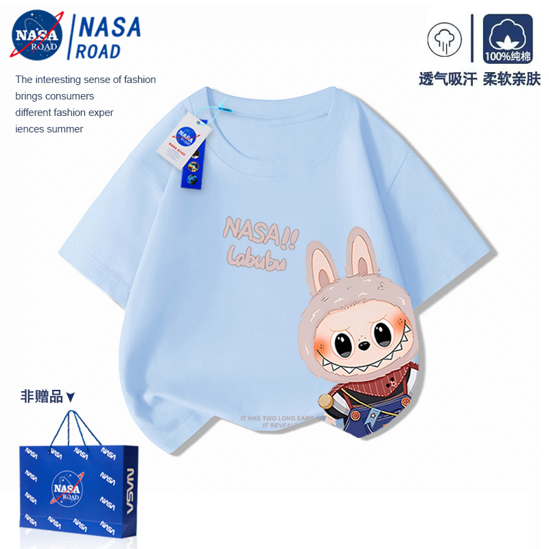 NASA卡通拉布布短袖T恤兒童夏裝2025新款男女中大童洋氣半袖上衣