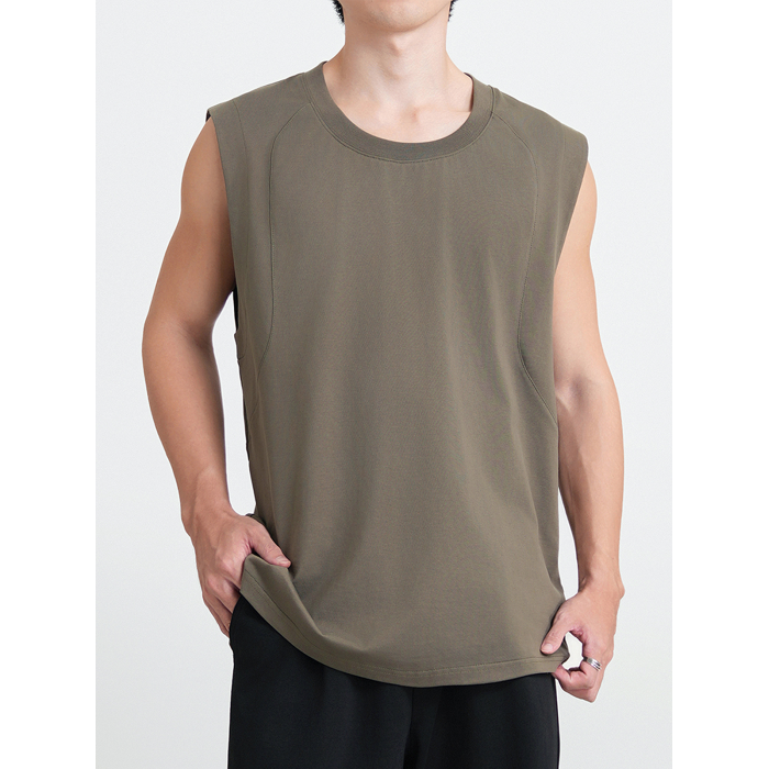 偶得·分割設計坎肩男士背心 基礎款 舒適百搭 濶版無袖透氣T恤